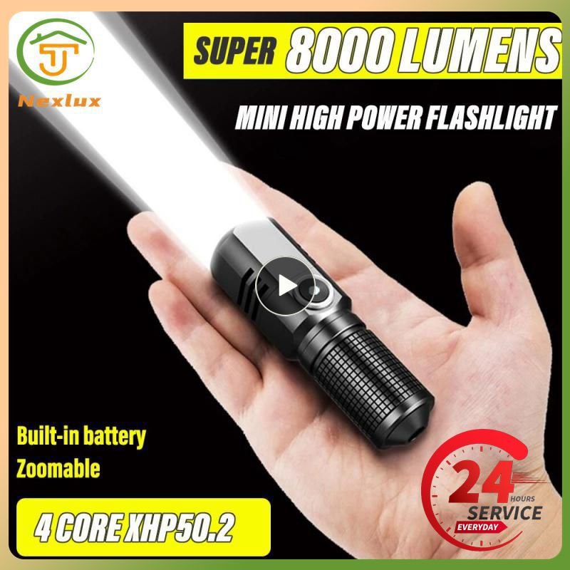 ZRE-LED USB Rechargeable Flashlight Waterproof LED Portable Powerful Lantern Solar Light for Camping Hiking