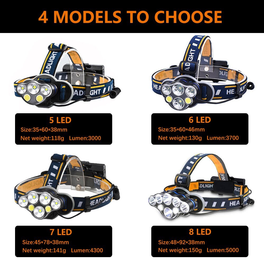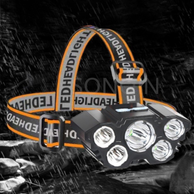 ZRE-LED USB Rechargeable Led Five-Head Headlamp Super Bright 18650 Built-in Battery Headlight Portable Head Flashlight Fishing Lantern
