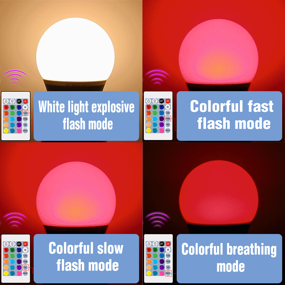 ZRE-LED Led Colorful Lamp AC100-240V Voltage E27 B22 Base Real Power 8W Seven colors are available for festival celebration, KTV bar
