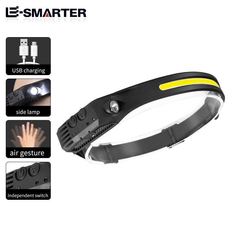 ZRE-LED LED Handwave Sensor 3-4 Hours USB Rechargeable Headlight Dimming Mode Hat Clip Headlamp Headlamp Flashlight for Outdoor Activity