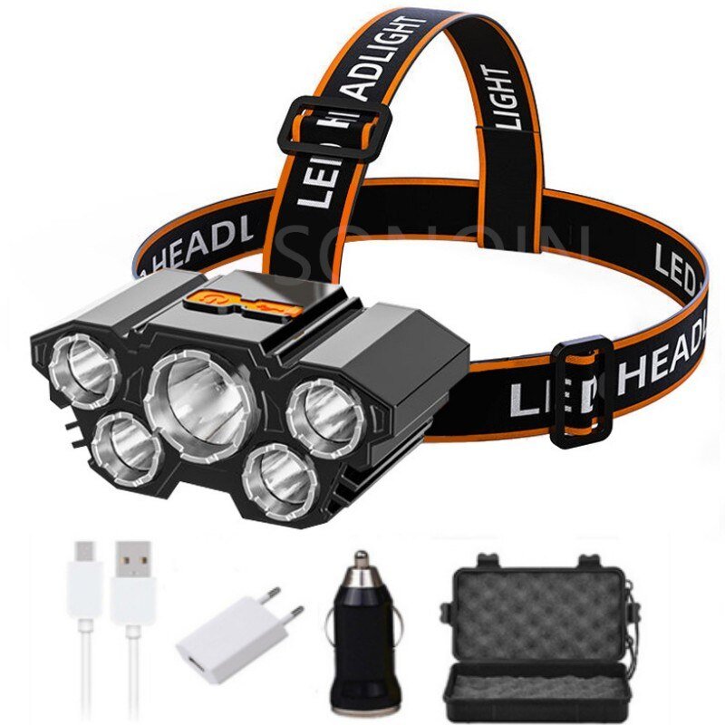 ZRE-LED LED Headlamp Ultra Bright Waterproof 4 Mode Headlight 7 T6 Rechargeable Built in 18650 Battery for Camping Light Hunting Fishing