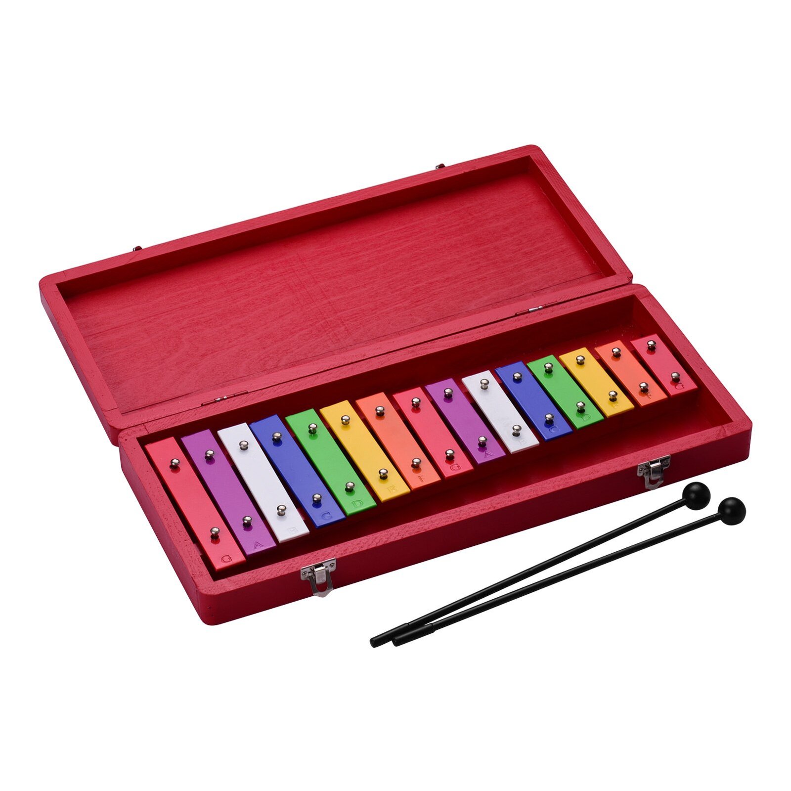 ZRE-AEXYPH Muslady 15 Keys Glockenspiel Xylophone Colorful Early Educational Musical Percussion Instrument Case Mallets for Music Sense