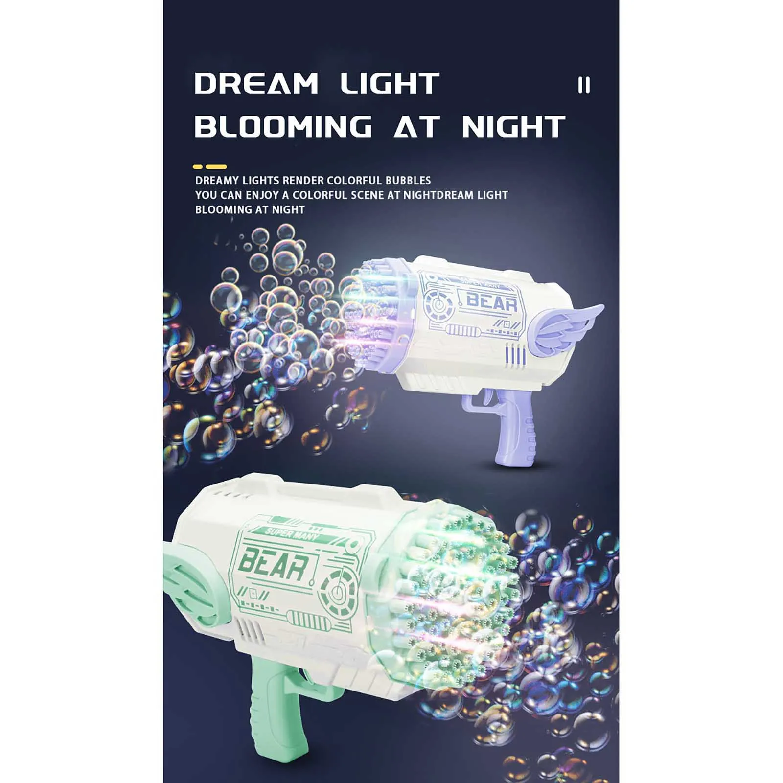 – Innovative Bubble Gun Design: The Bubble Rocket Launcher has