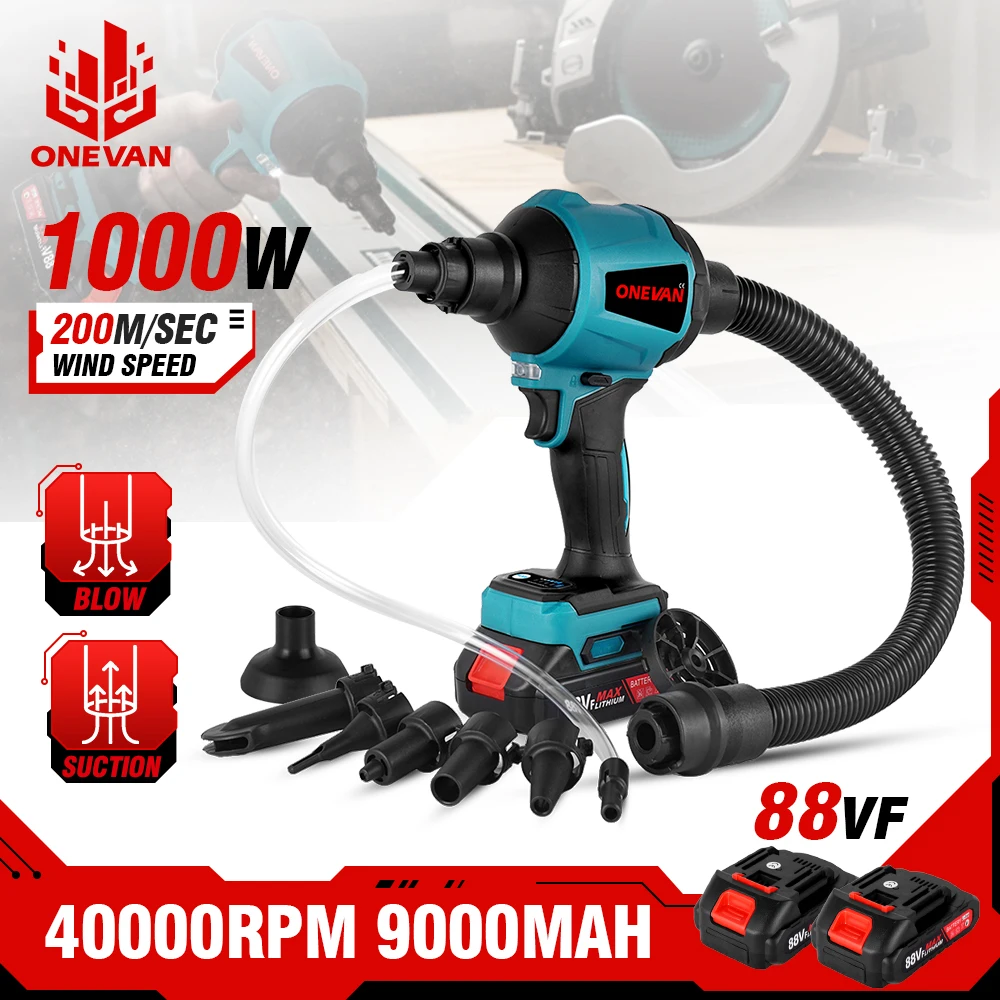 This Product High-powered blowing force for a wide range of applications whether is cleaning up the in the workshop, removal of dust from pilot holes for anchors or inflating pool toys on the weekend. With one touch quick change nozzle replacement the nozzles can quickly and easily be changed to suit the application. Clean up or inflation is a breeze .