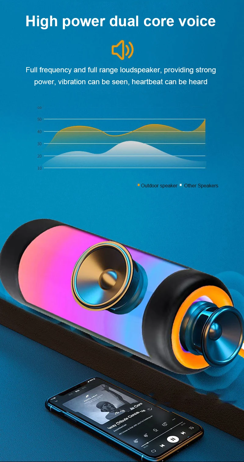 RYRA Portable Wireless Bluetooth Speaker New Outdoor High Volume Subwoofer Sound Creativity LED Colorful Lights Mini Sound