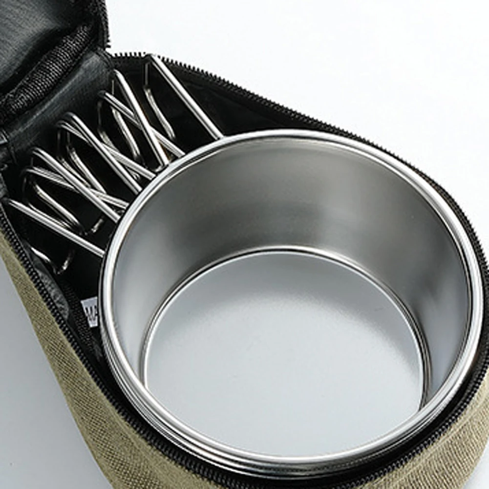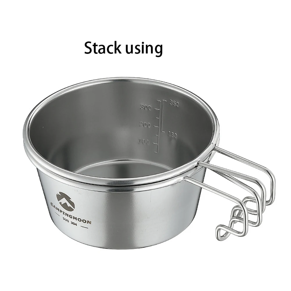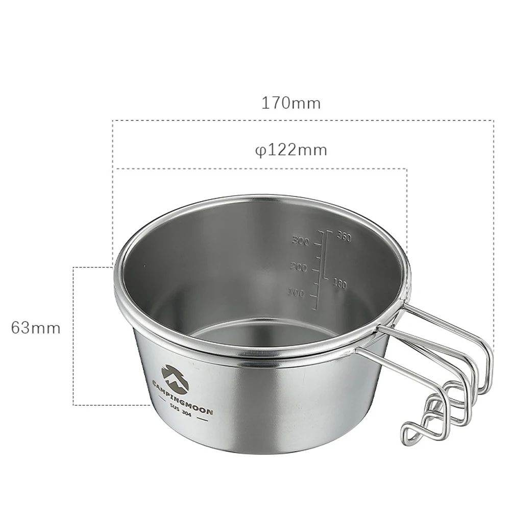 This sierra bowl is made of 304 stainless steel material, and it can be heated directly over an open flame. Multi-scales inside of the bowl, which makes it applicable to home and outdoor acting as a measuring cup. Small size, it can be stacked in multiple layers for carrying and storage. You can have a try.