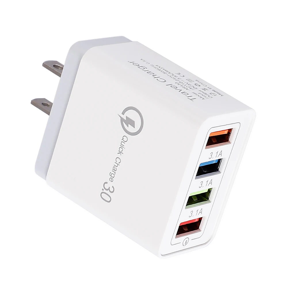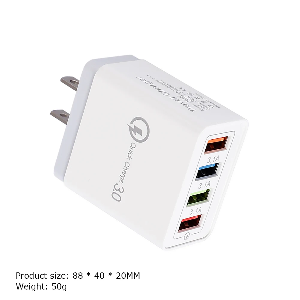 Portable 4 Ports Smart USB Color Charger 3A Fast Charging Travel Phone Charger US Plug Adapter Universal Notes: