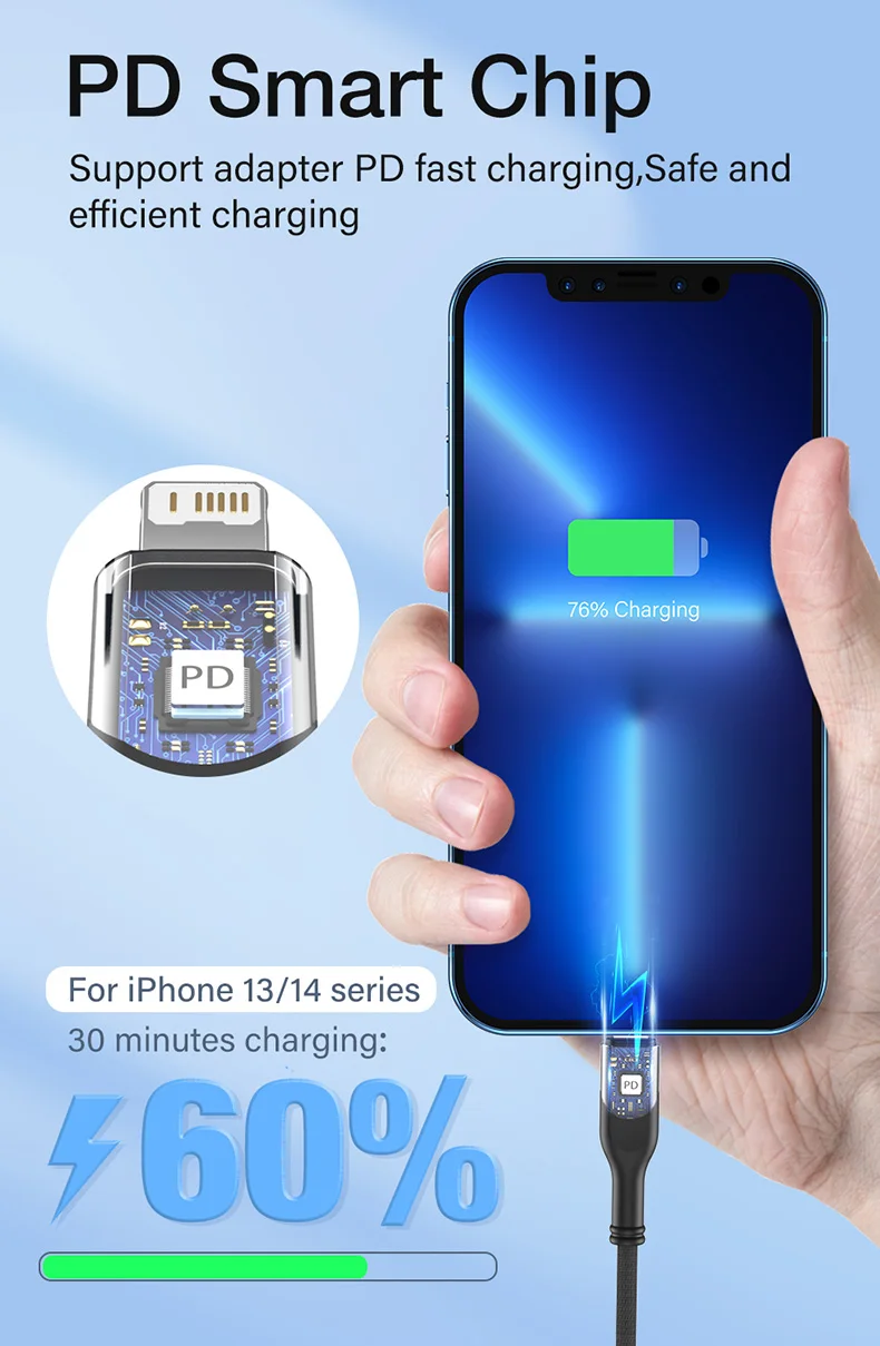 3. USBC TO L Charging for iPhone 14 pro max, 30 minutes to 50%.