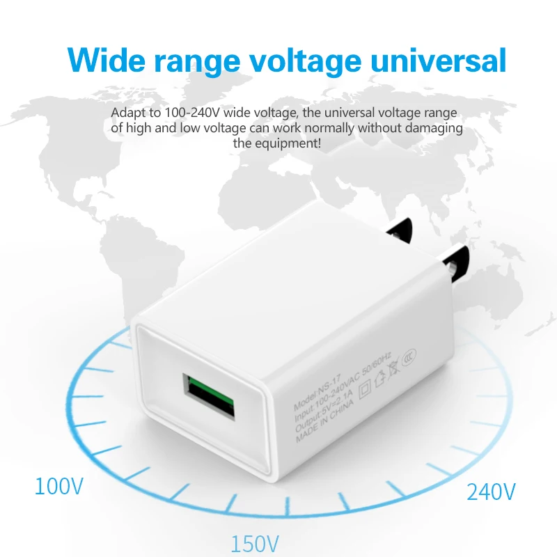 NAISU EU US Charging Adapter Plug 5V 10W Mobile Phone USB Wall Charger For Iphone 13 12 11 Huawei Samsung Xiaomi Redmi Universal