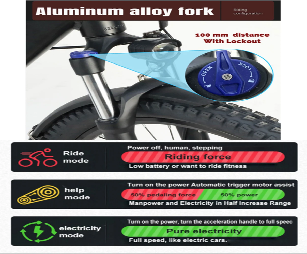 • Front Fork: Aluminum alloy front suspension fork with lockout and adjustment