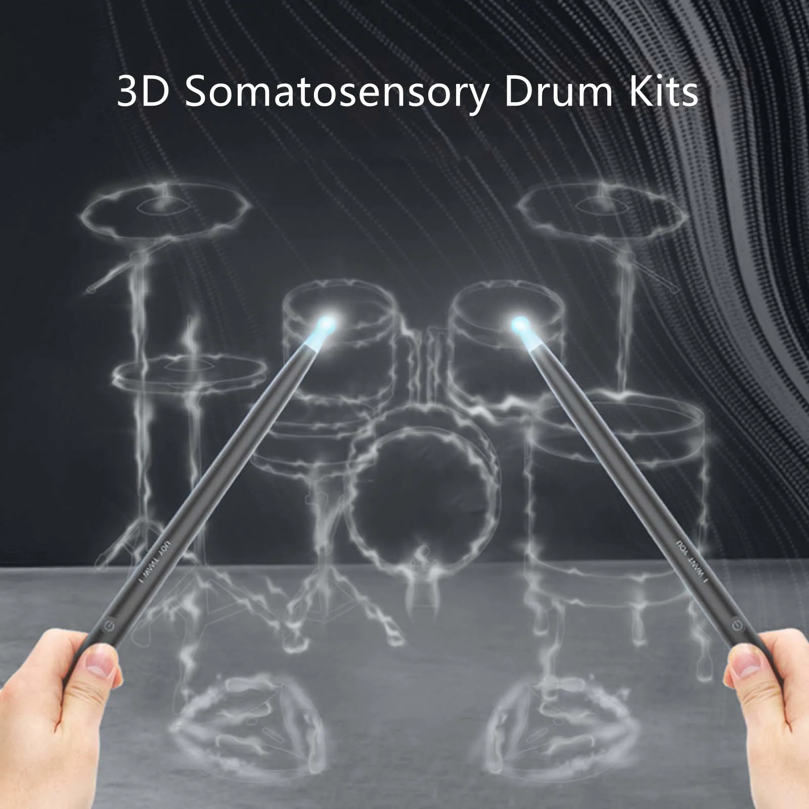 Air Electronic Drum. Drum kit for hitting the air, it uses advanced 3D somatosensory technology, 9 axis accurate recognition of stick hitting position, and instantly plays the matching drum sound through the audio equipment.