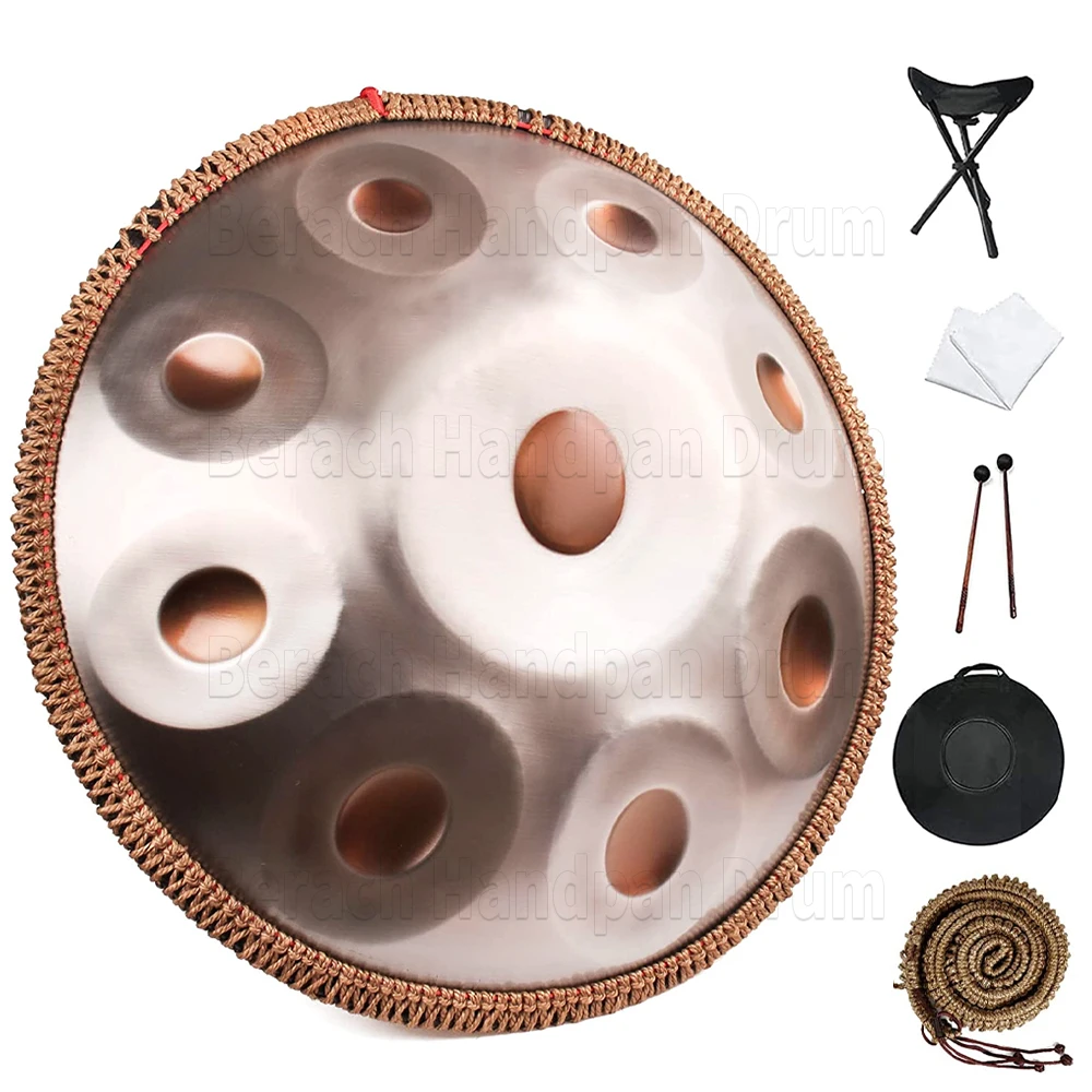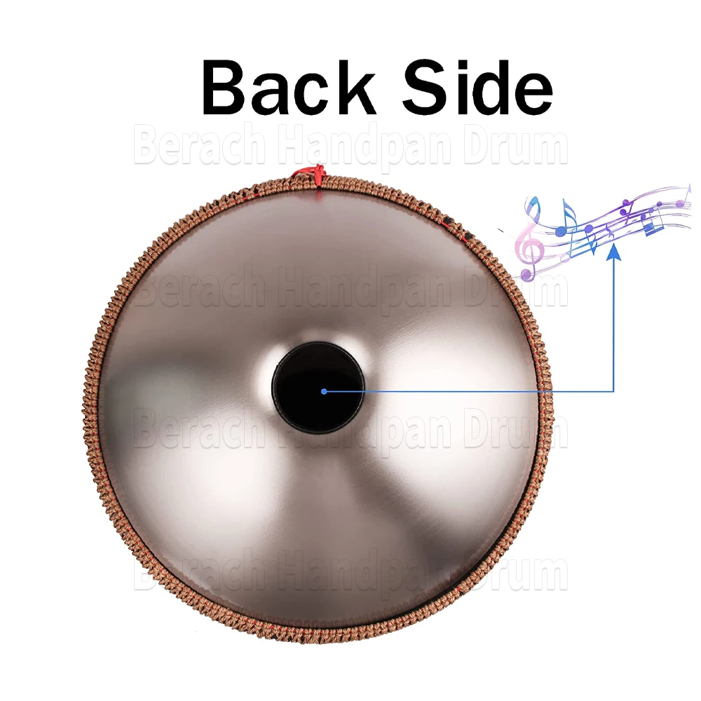 【High-end material】 ♬ : Berach handpan drum is made of heavy-duty nitrogen stainless steel material. After high-temperature heat treatment, the steel plate will harden. So the sound is stable, clear, pure, standard.