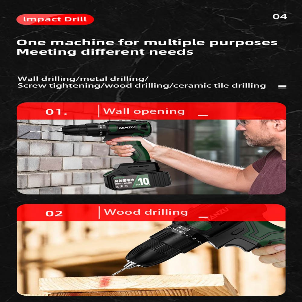 extra strong motor One piece to complete all work. Drilling wood / steel / cement / screwing.
