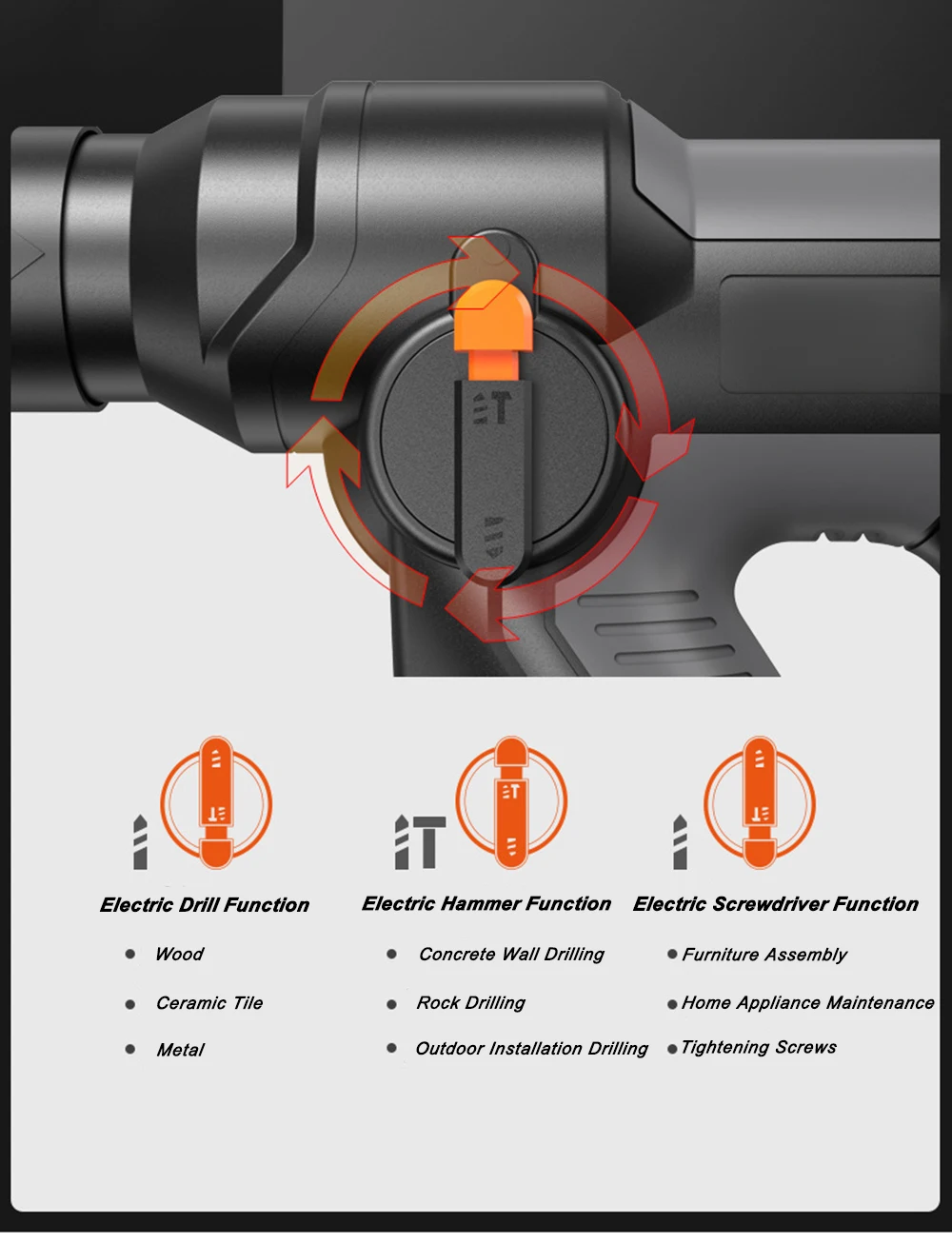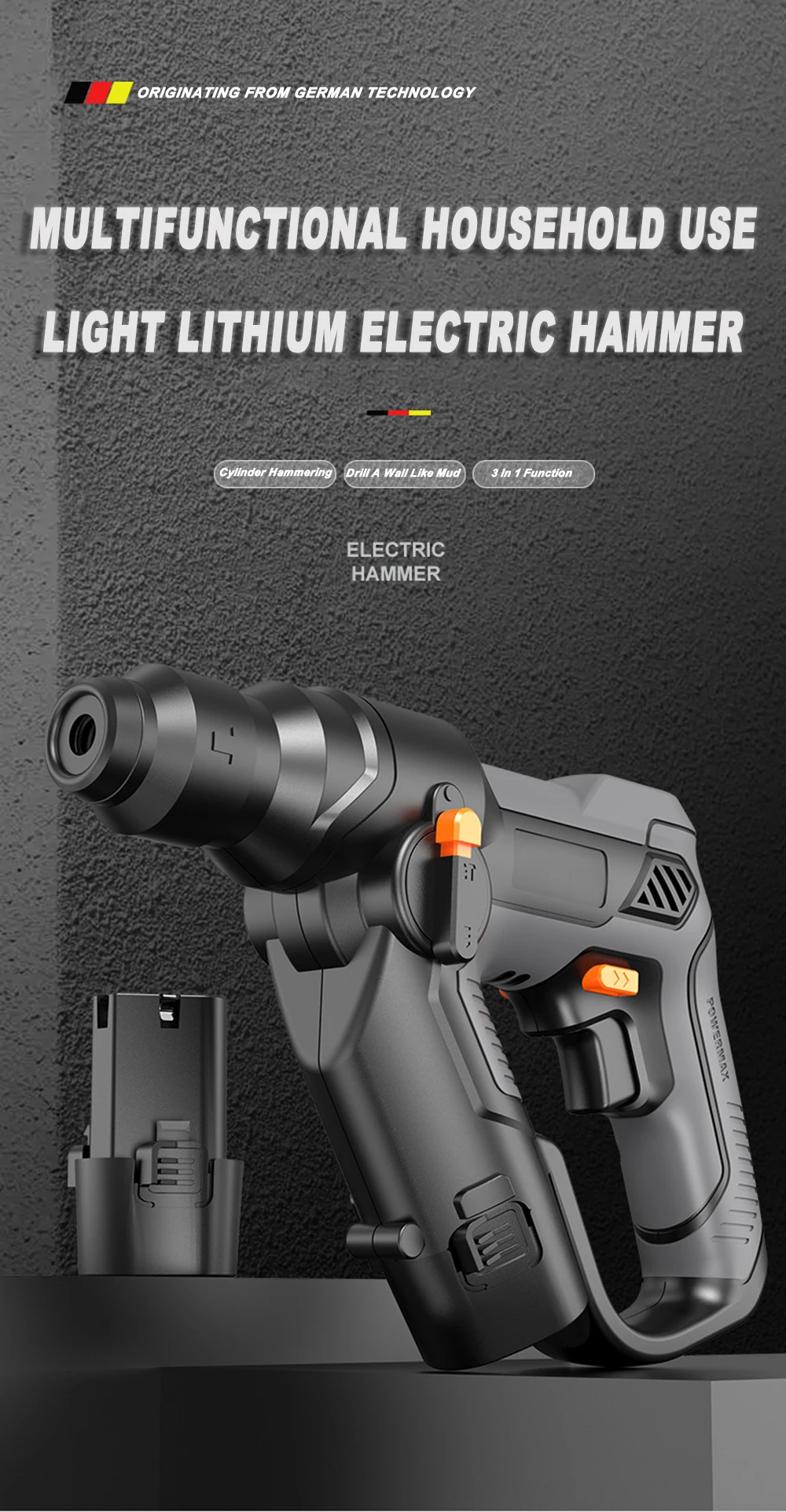 12V 500W Cordless Electric Hammer Drill Multifunction Drill Electric Screwdriver Rechargeable Lithium-Ion Wireless Hammer Drill