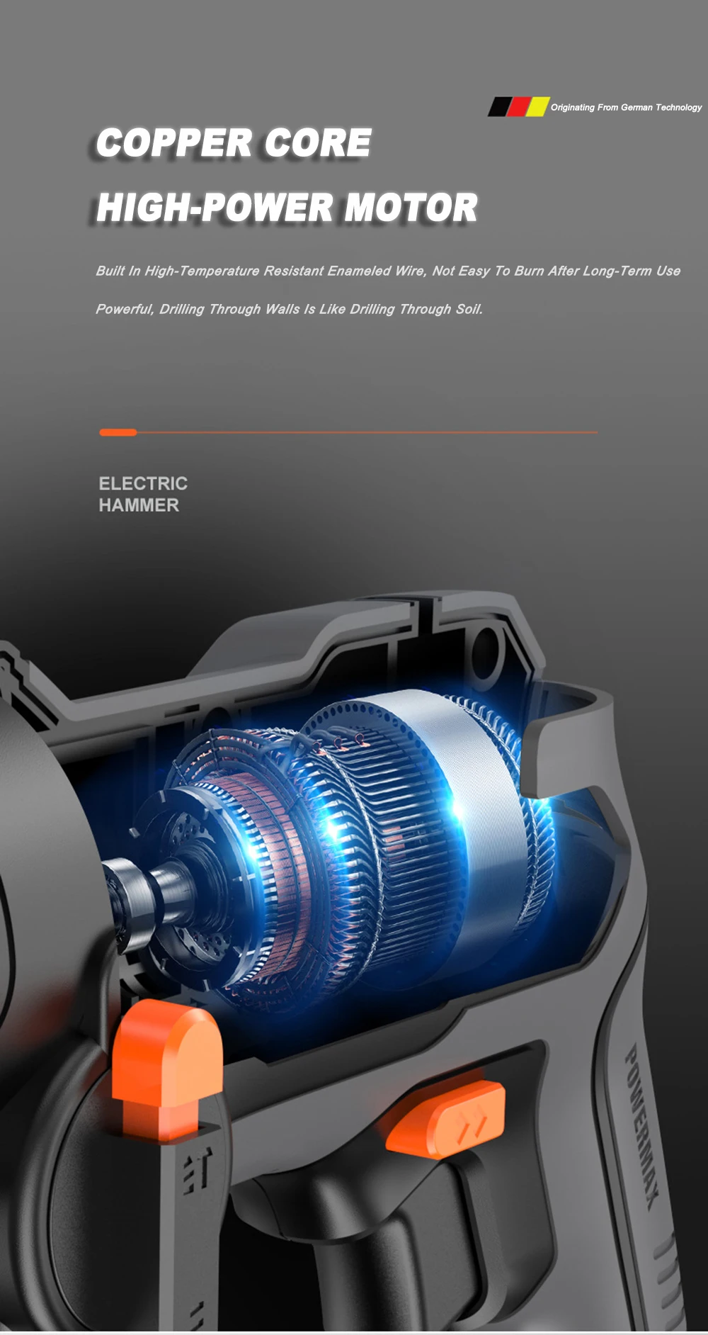3.High Precision Precision Steel Gears,Thickened Double Bearing,Stronger Drilling Force With Stronger Impact Force;