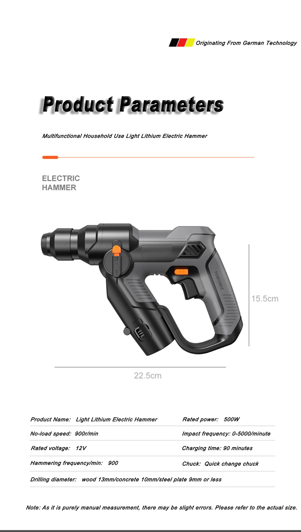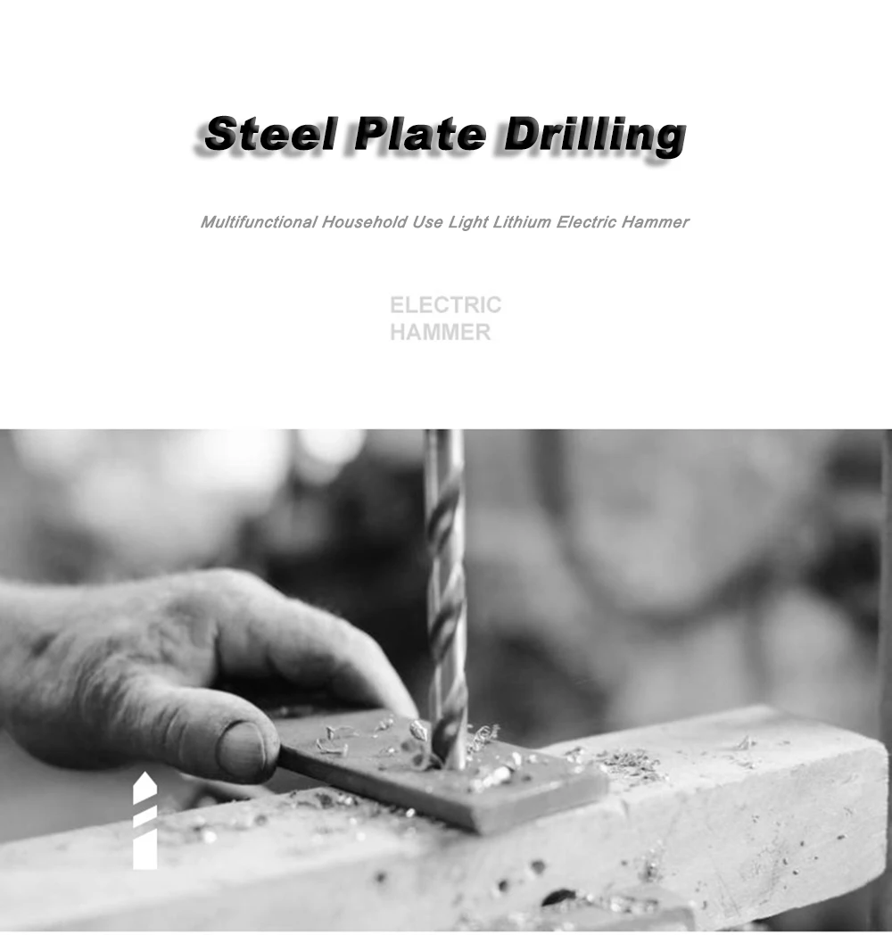 - Drilling diameter: wood 13mm,concrete 10mm,steel plate 9mm