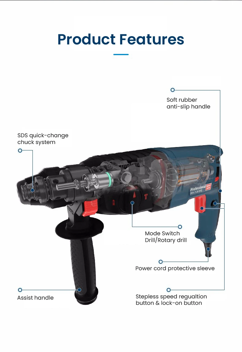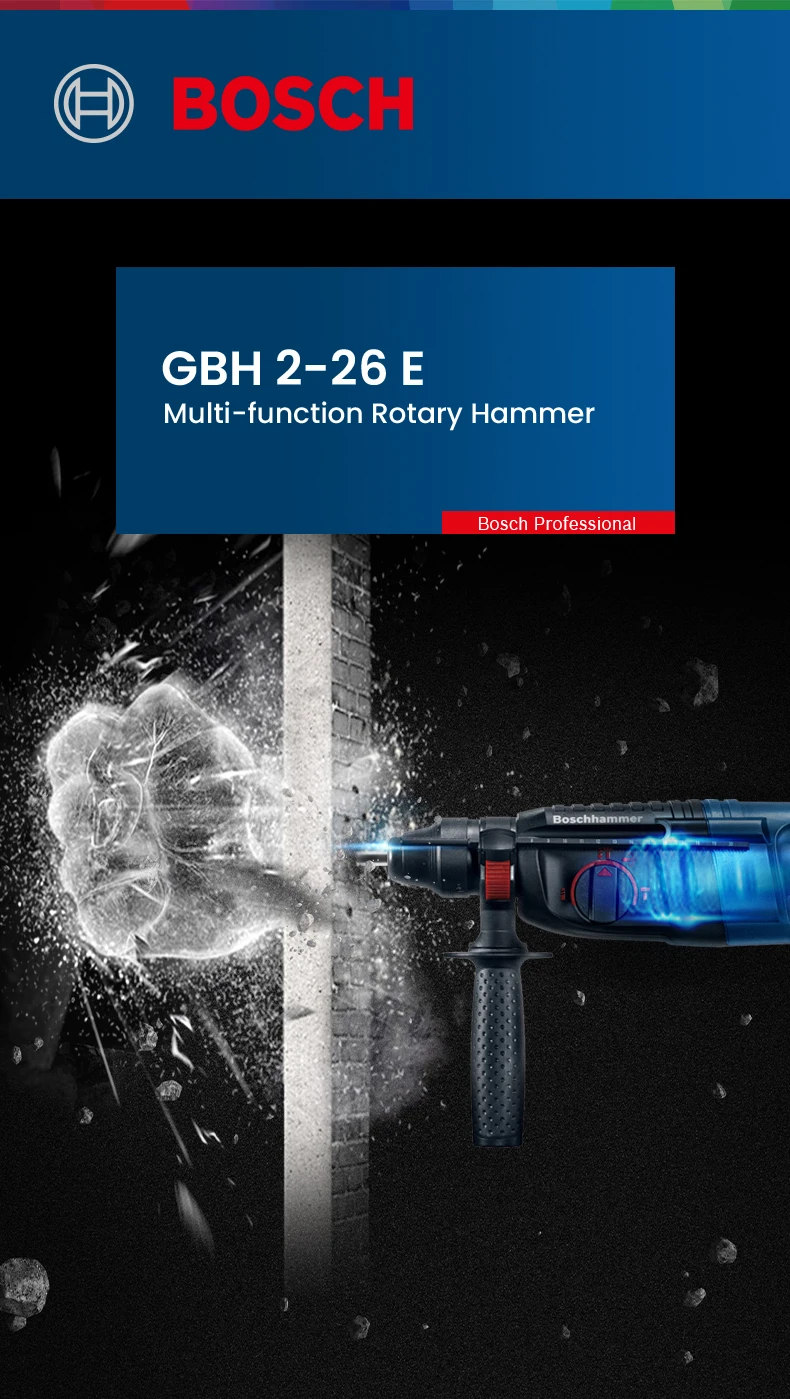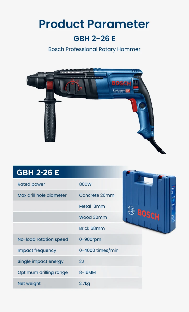 Bosch GBH 2-26 E Professional Electric Hammer 800W Multi-function Rotary Hammer Drill 3J Impact Force