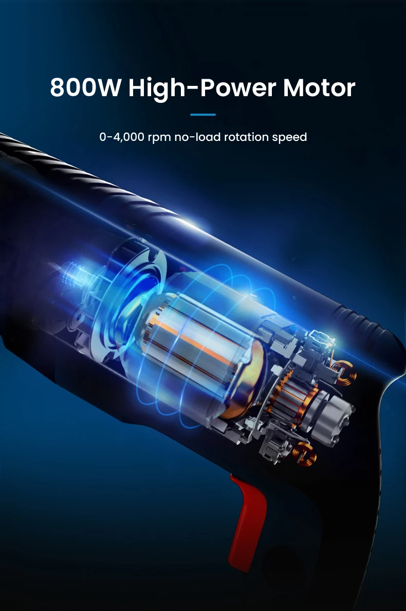 1. Stepless speed regulation, 0-4000rpm impact frequency, lock-on button, keep constant speed.