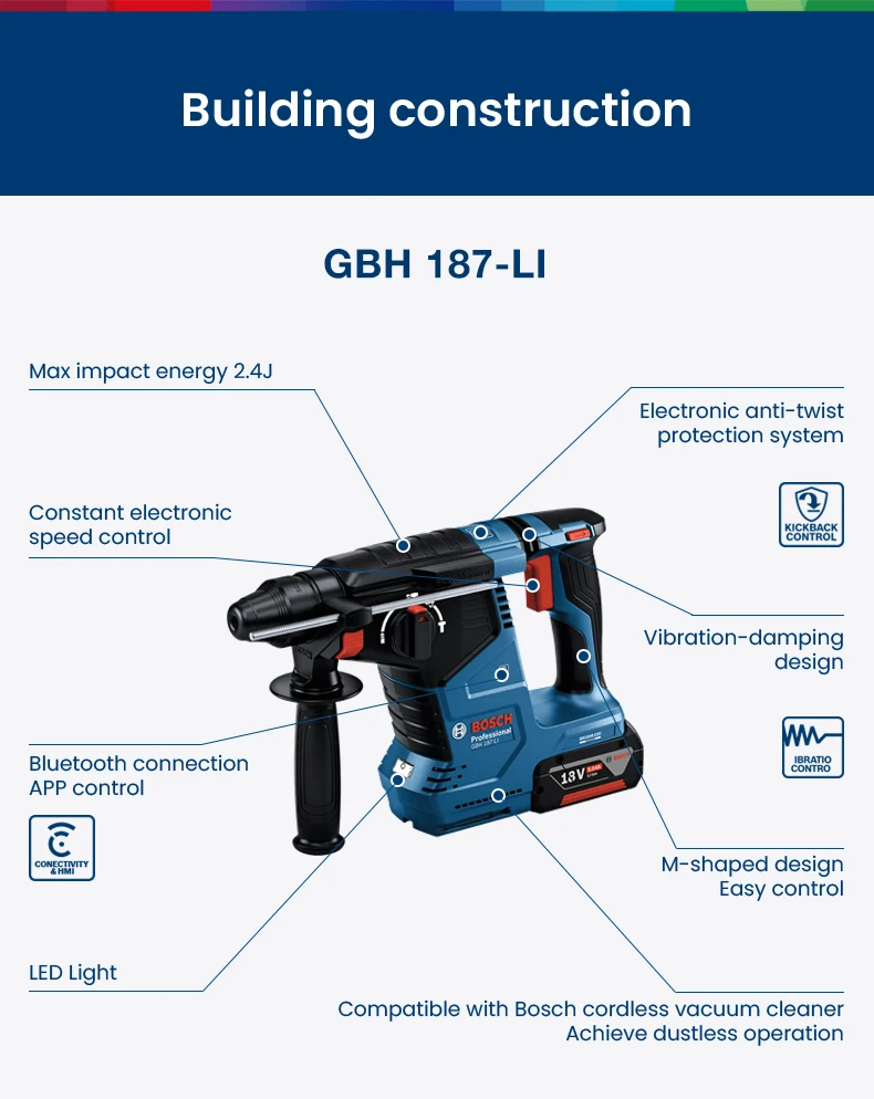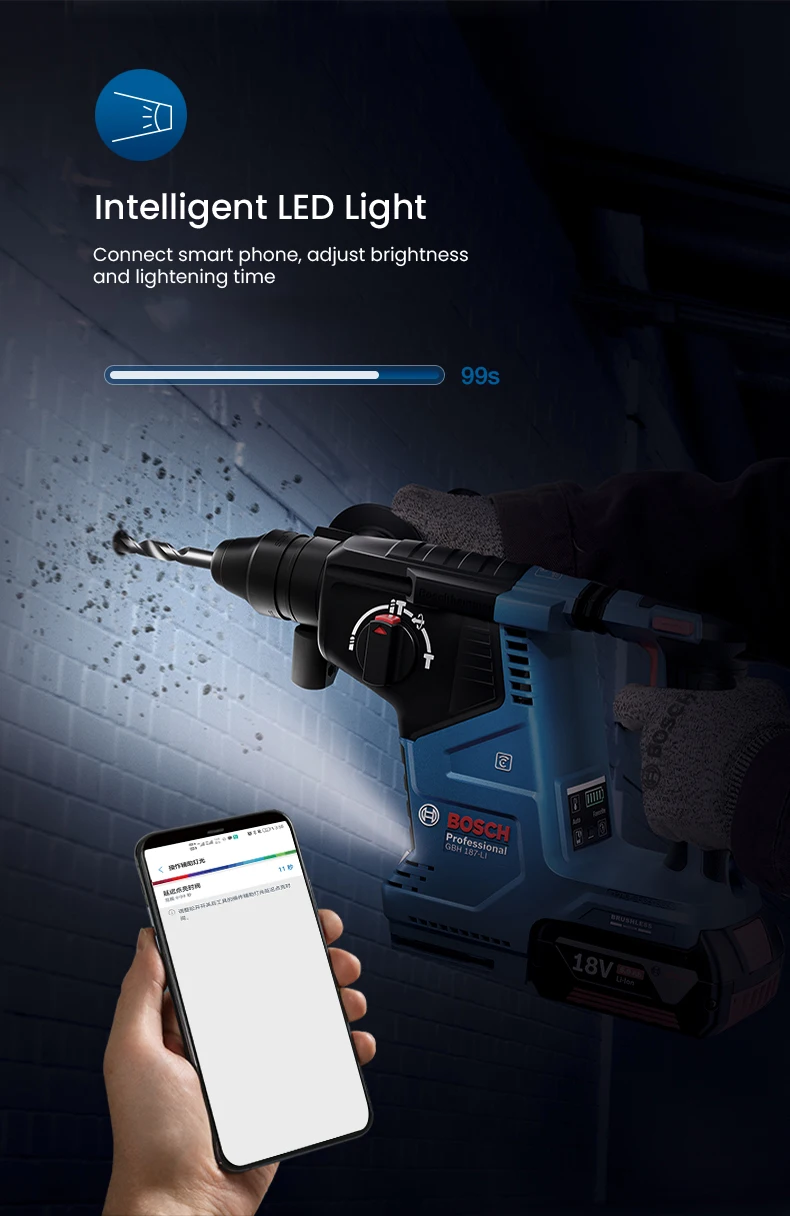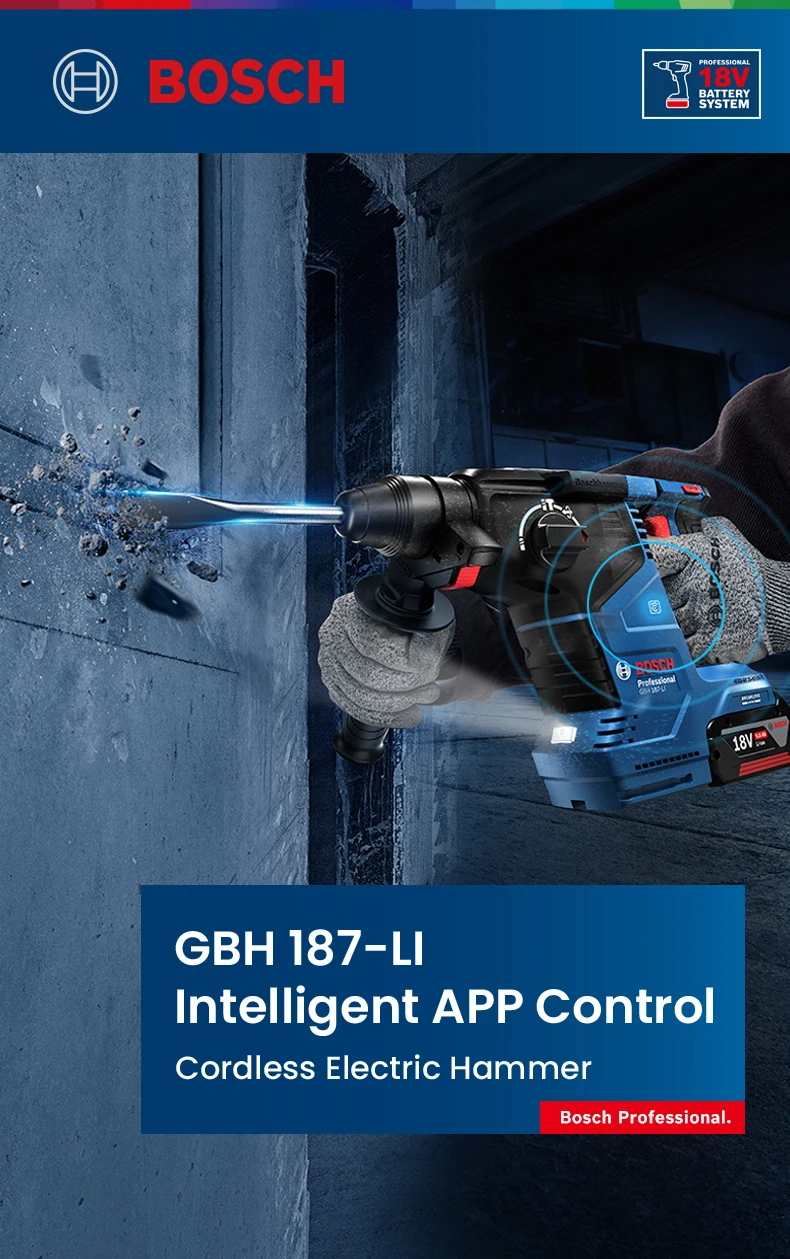 BoschGbh187 Cordless Rotary Power Hammer Bluetooth Intelligent App Control 18V Multifunction Electric Drill Rotary Hammer Chisel