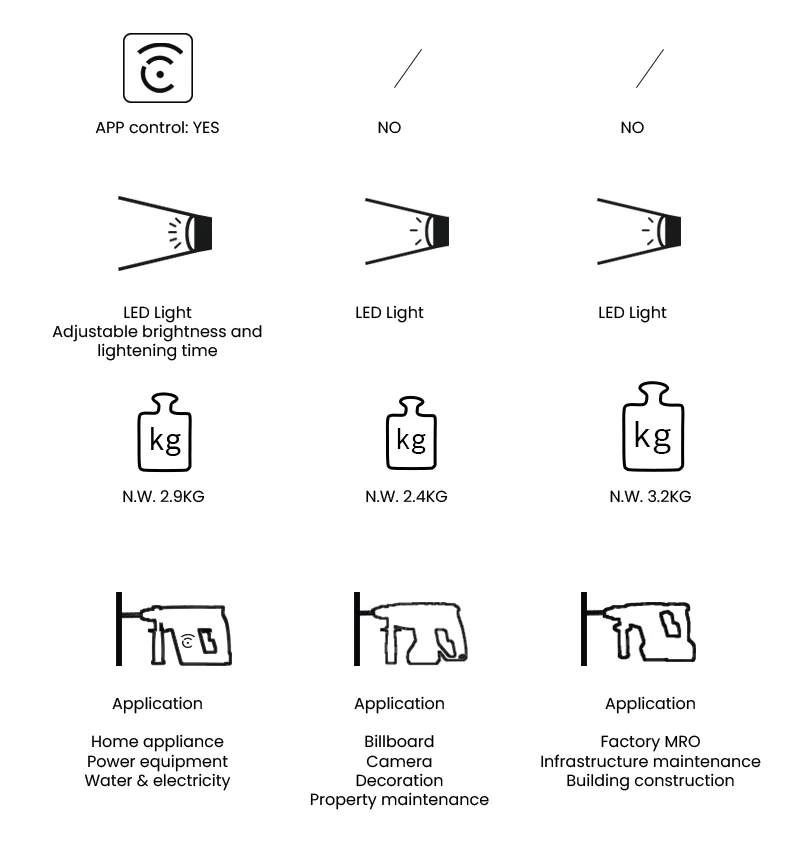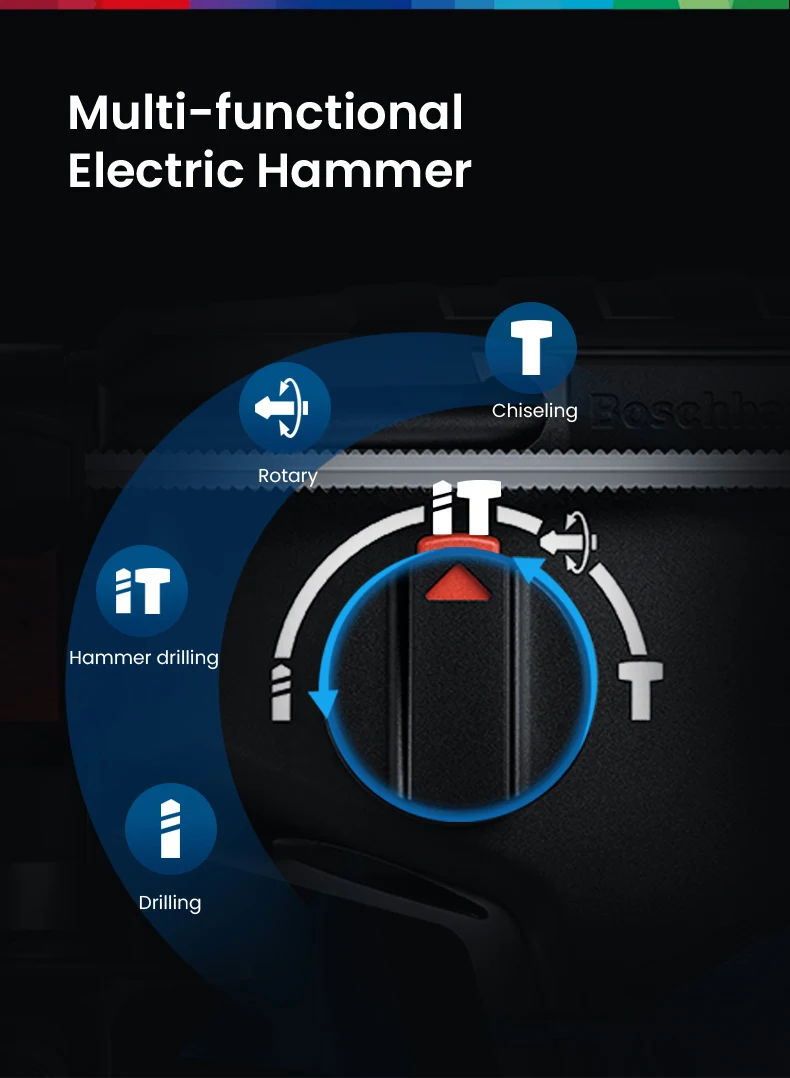 3. Multi-mode: Drill / Rotary hammer / Chisel / Rotary, applicable to different work conditions