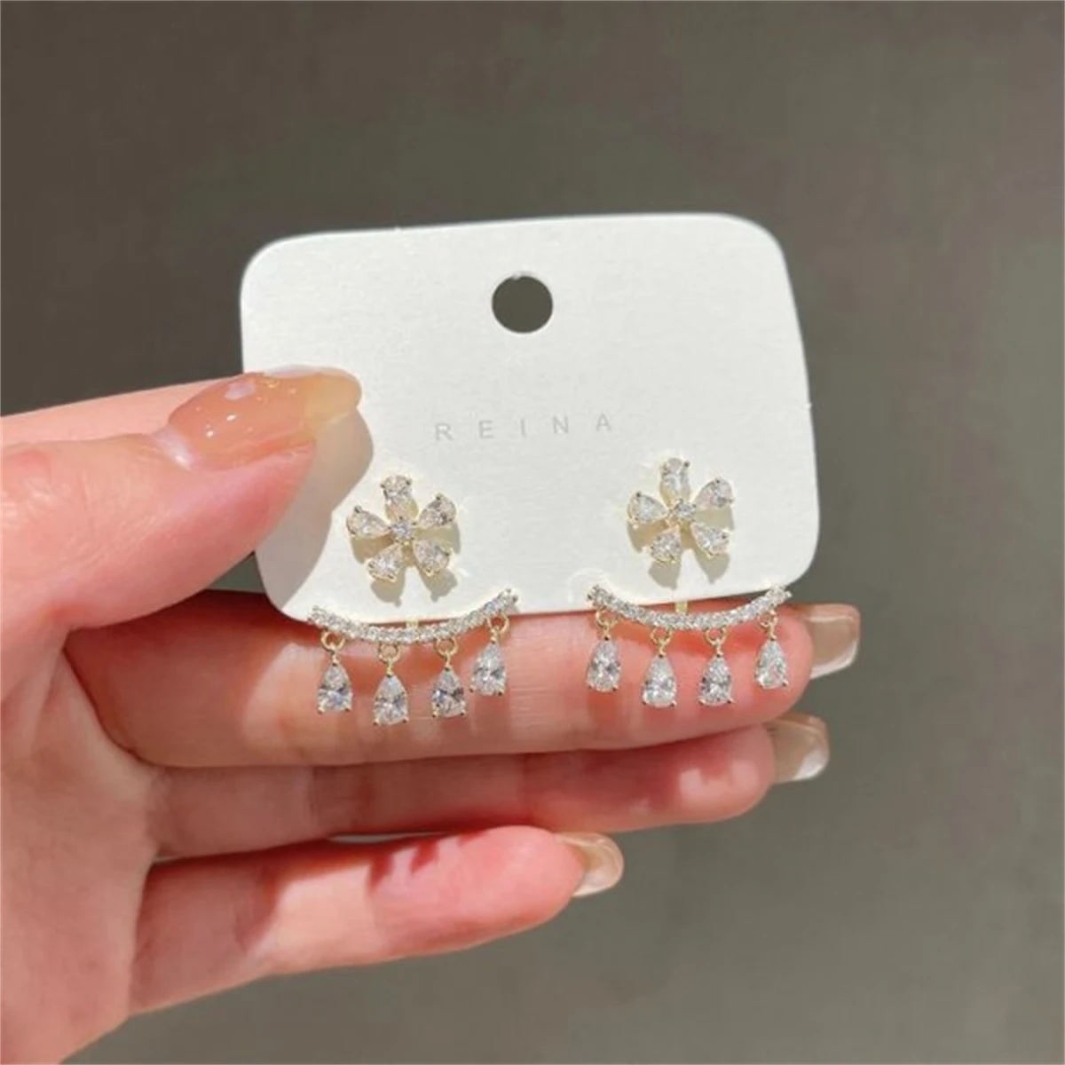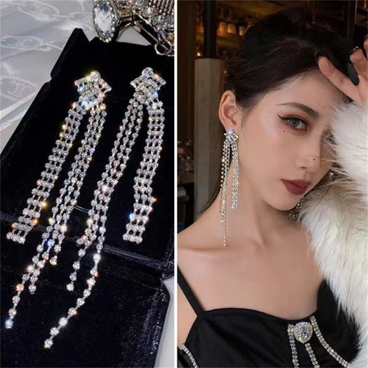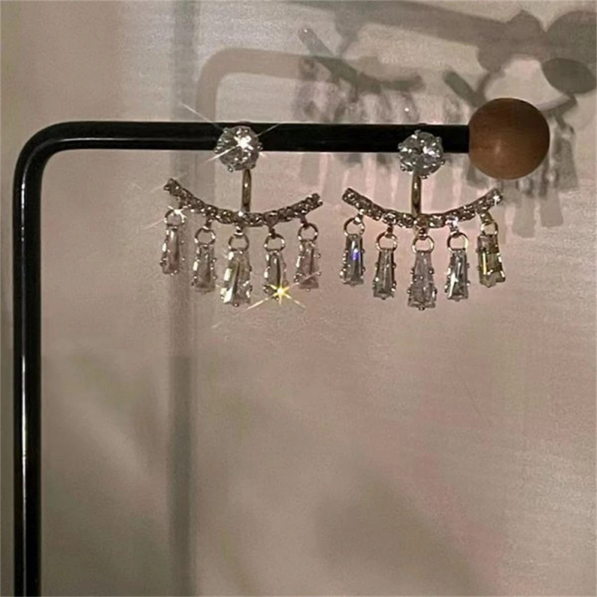 New Crystal Drop Earrings with Bling Bling Cubic Zirconia Temperament Women Earrings High Quality Silver Color Trendy Jewelry