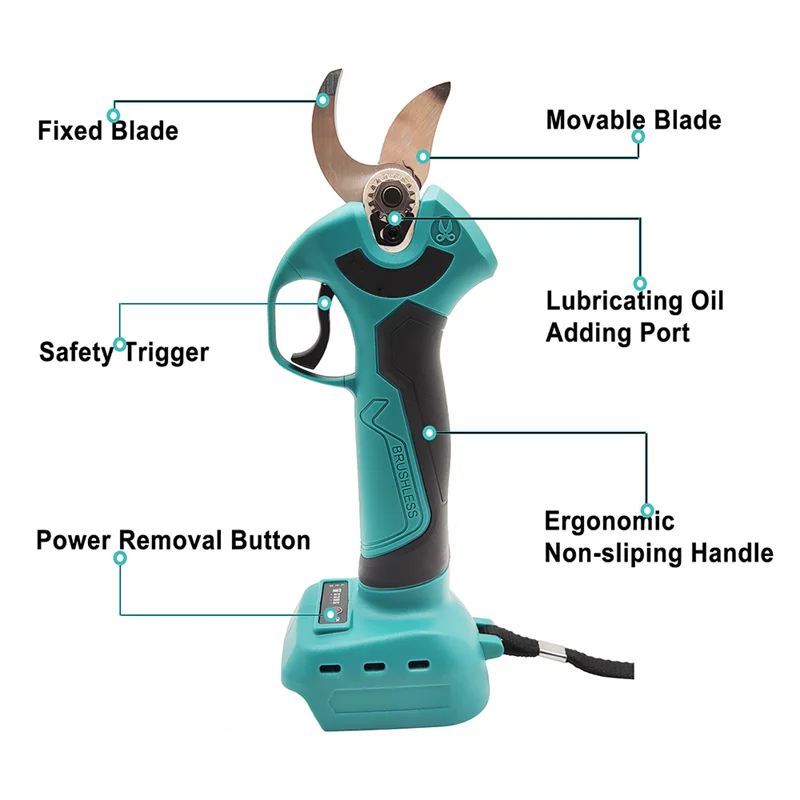 Sharp, Sturdy Blades Our electric pruners cut quickly and cleanly without damaging branches. Forged from high carbon steel and powered by a brushless motor, the blade is extremely sharp and durable, easily cutting through twigs up to 1.2"/30mm. Electric pruners provide fast, clean trim without damaging branches.