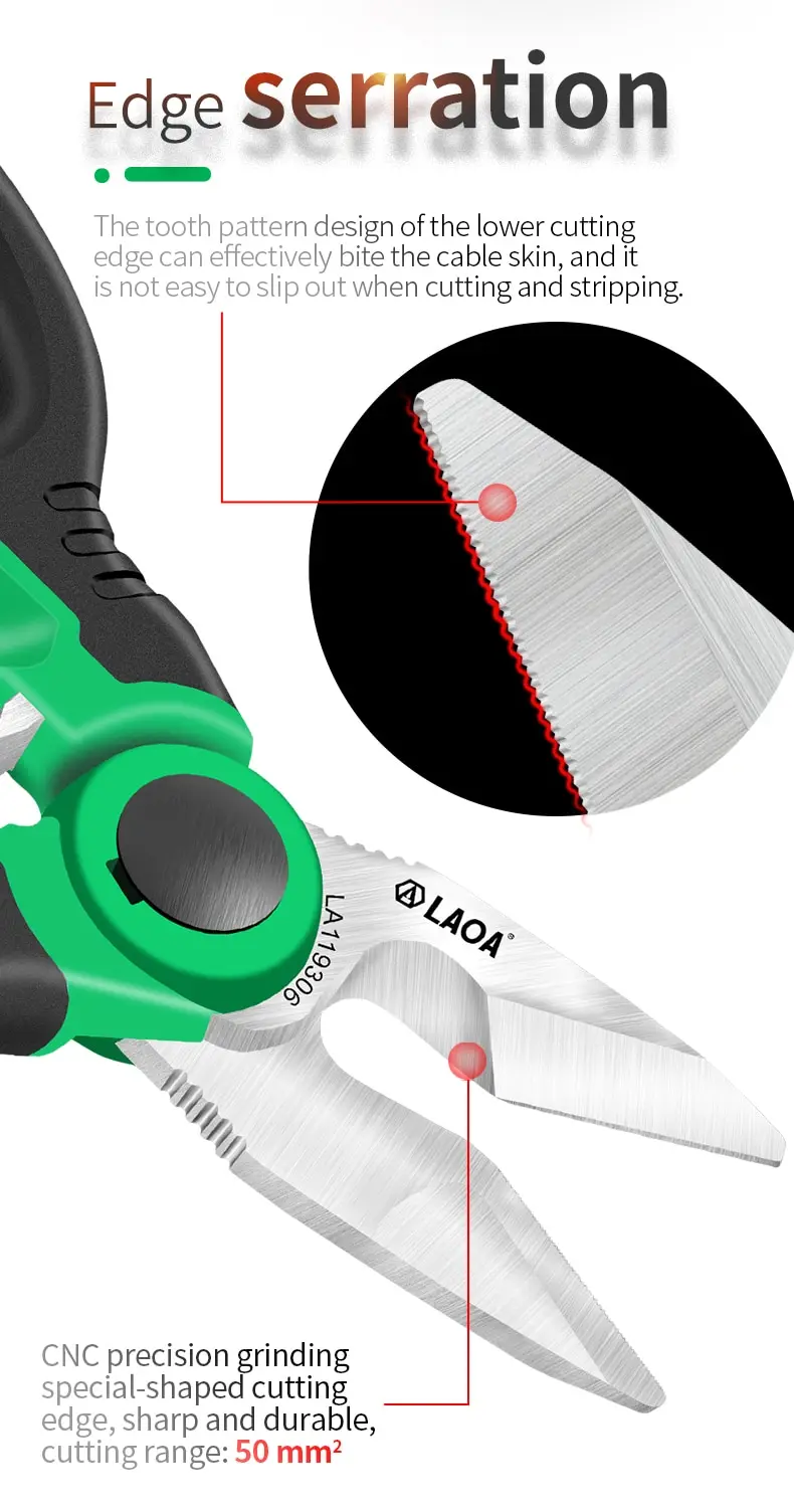 3. The tooth pattern design of the lower cutting edge can effectively bite the cable skin, and it is not easy to slip out when cutting and stripping.