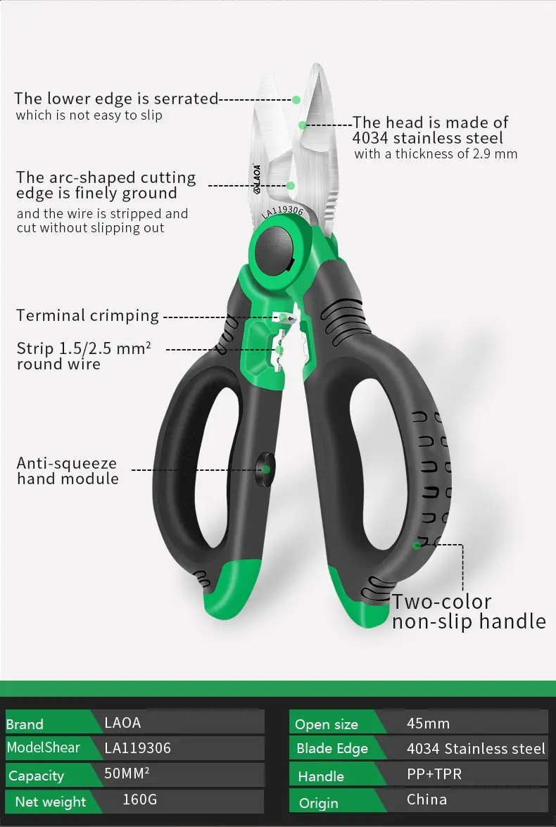 3. The arc-shaped cutting edge is finely ground, and the wire is stripped and cut without slipping out