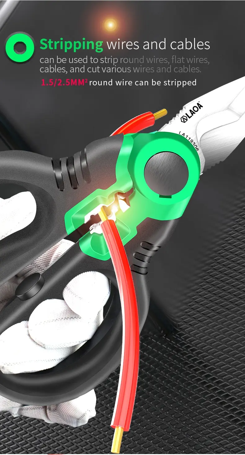 can be used to strip round wires, flat wires, cables, and cut various wires and cables.