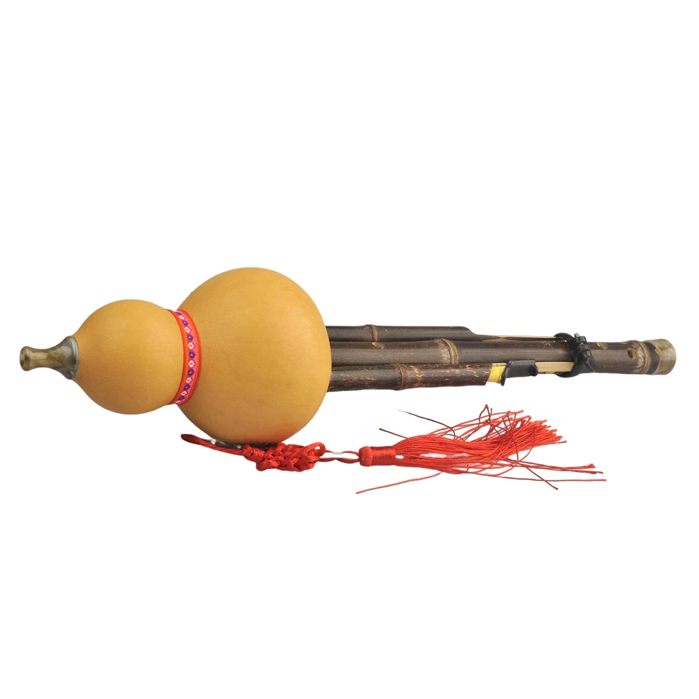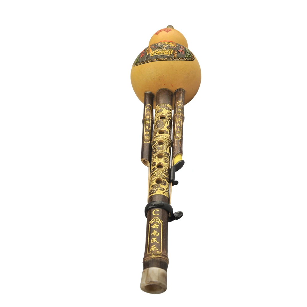 Chinese Handmade Hulusi Black Bamboo Gourd Cucurbit Flute Ethnic Musical Instrument Key of C with Case for Beginner Music Lovers