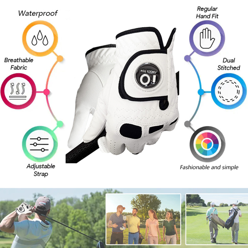 - QUALITY MATERIAL AND FLEXIBLE DESIGN: The Back is Made of Durable Synthetic Leather and Strategically Placed Lycra Spandex in Fingers for Flexibility and Breathability in Key Areas; The Ball Marker is Fit on The Logo to Make it Convenient to Take it On and Off;
