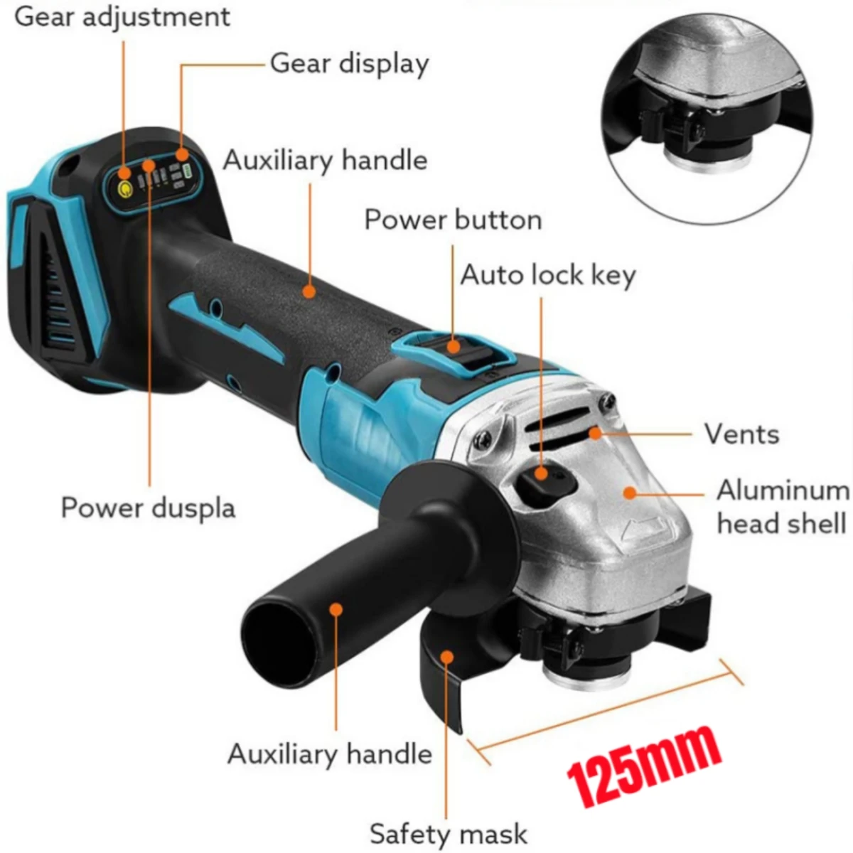 18V 125mm M14 Brushless Electric Angle Grinder 4 Speed No Battery DIY Cutting Machine Power Tools for Makita 18V Battery