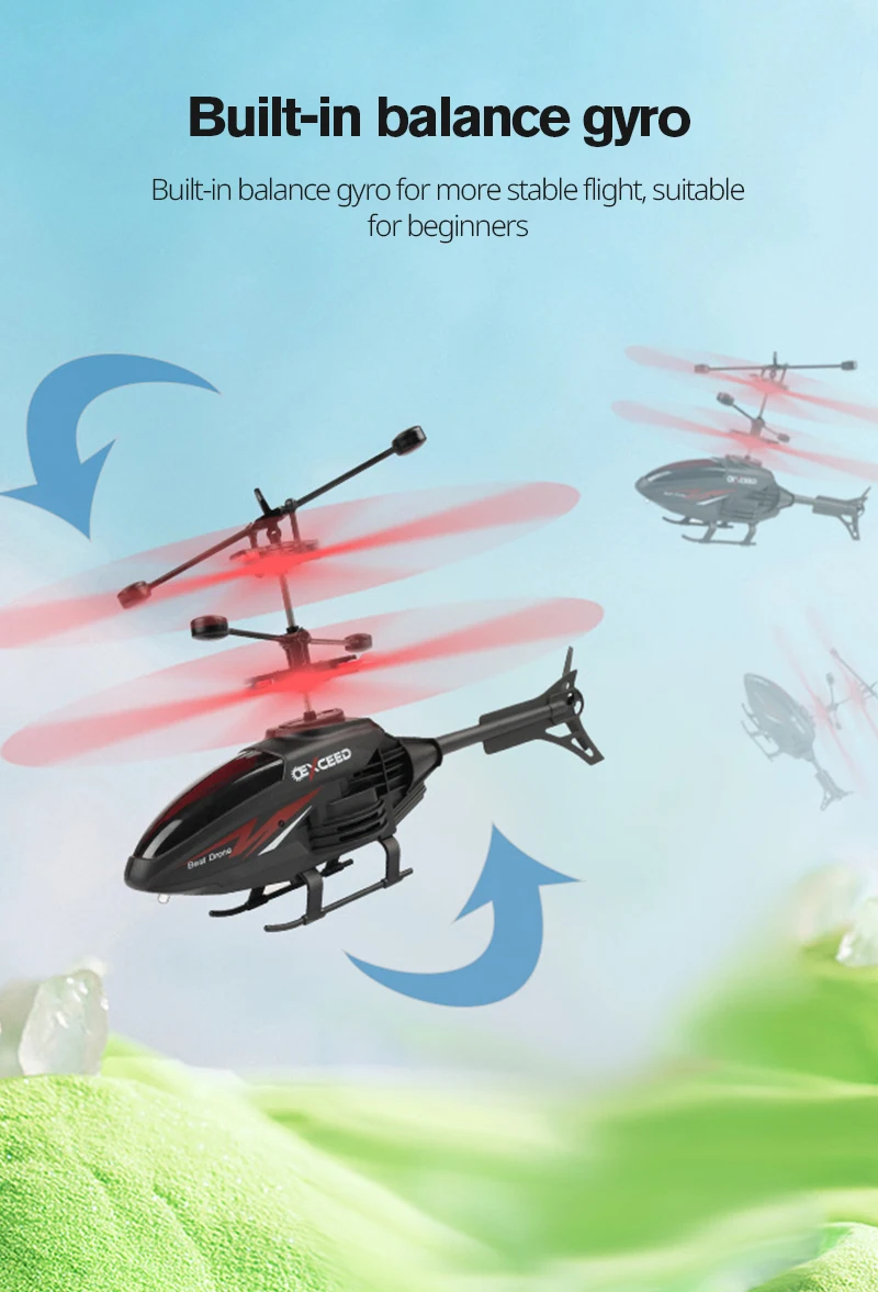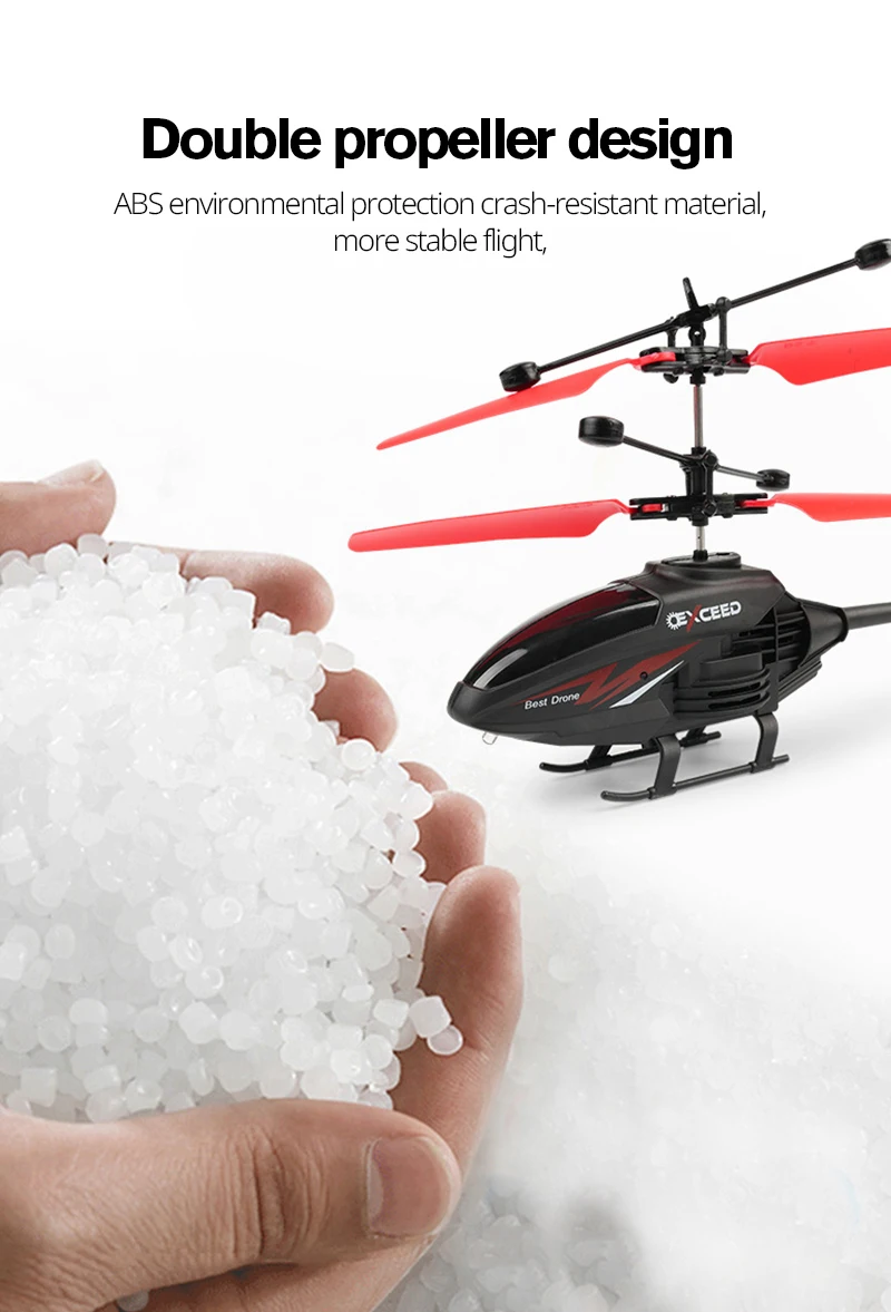 Anti-Collision creative induction RC helicopter is made of light-weight and flexible material, equipped with child-friendly blades, Good wind resistance, not easy to deformation, with the role of cushioning with the ground to protect the aircraft body.