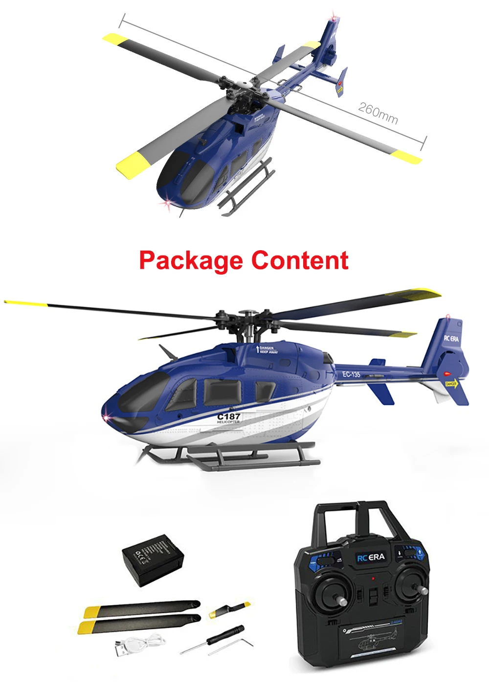 Product size (mm): rotor diameter 256mm, fuselage length 257mm, height 81mm