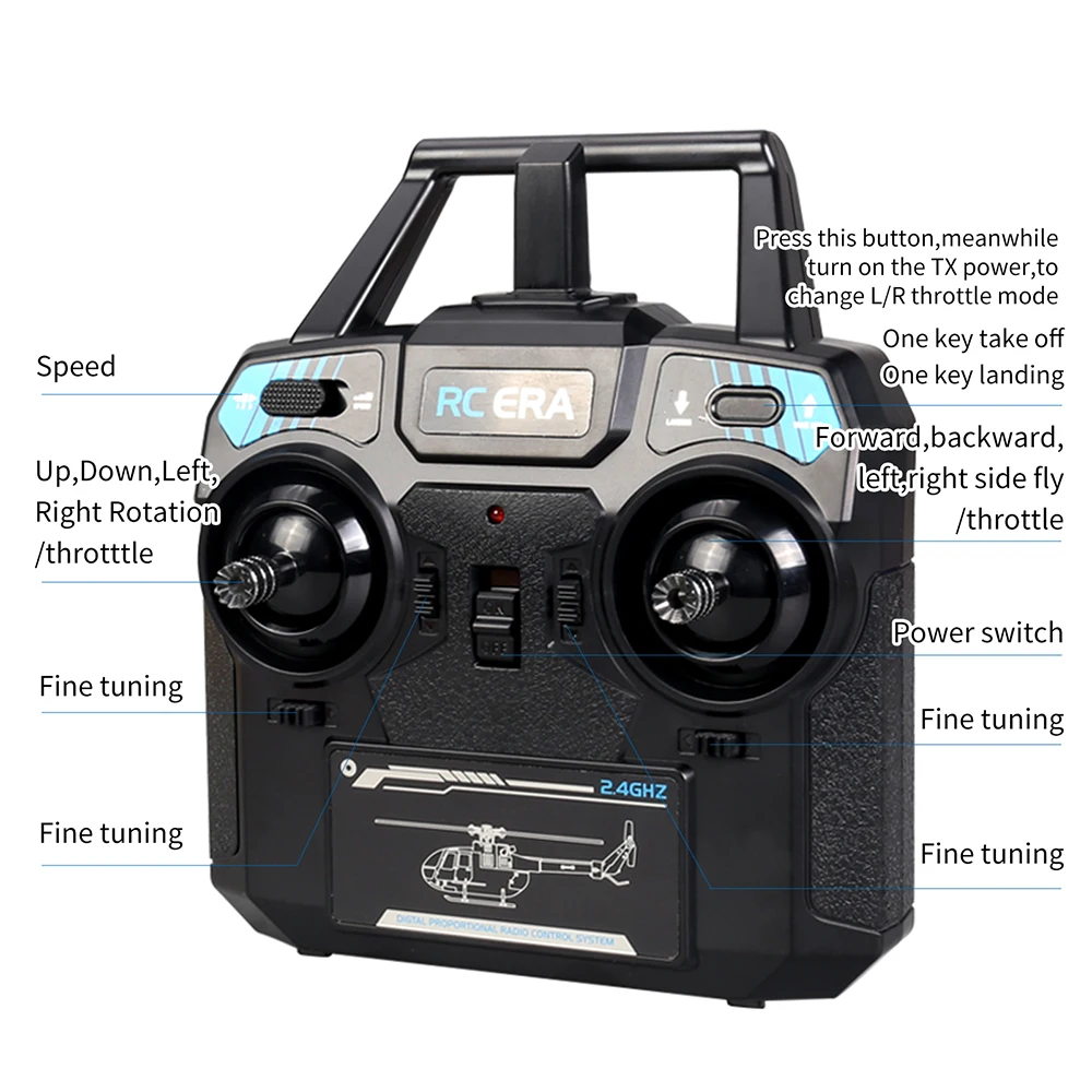 6 Low voltage alarm, locked rotor protection, out of control protection, large and small rudder conversion, one button takeoff, one button landing and other functions;