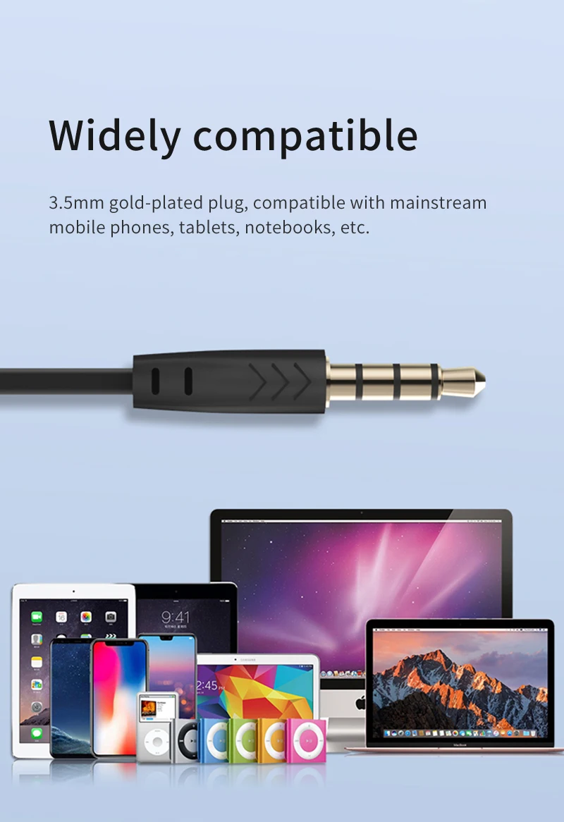 3.5mm gold-plated plug,compatible with mainstream mobile phones, tablets, notebooks, etc.