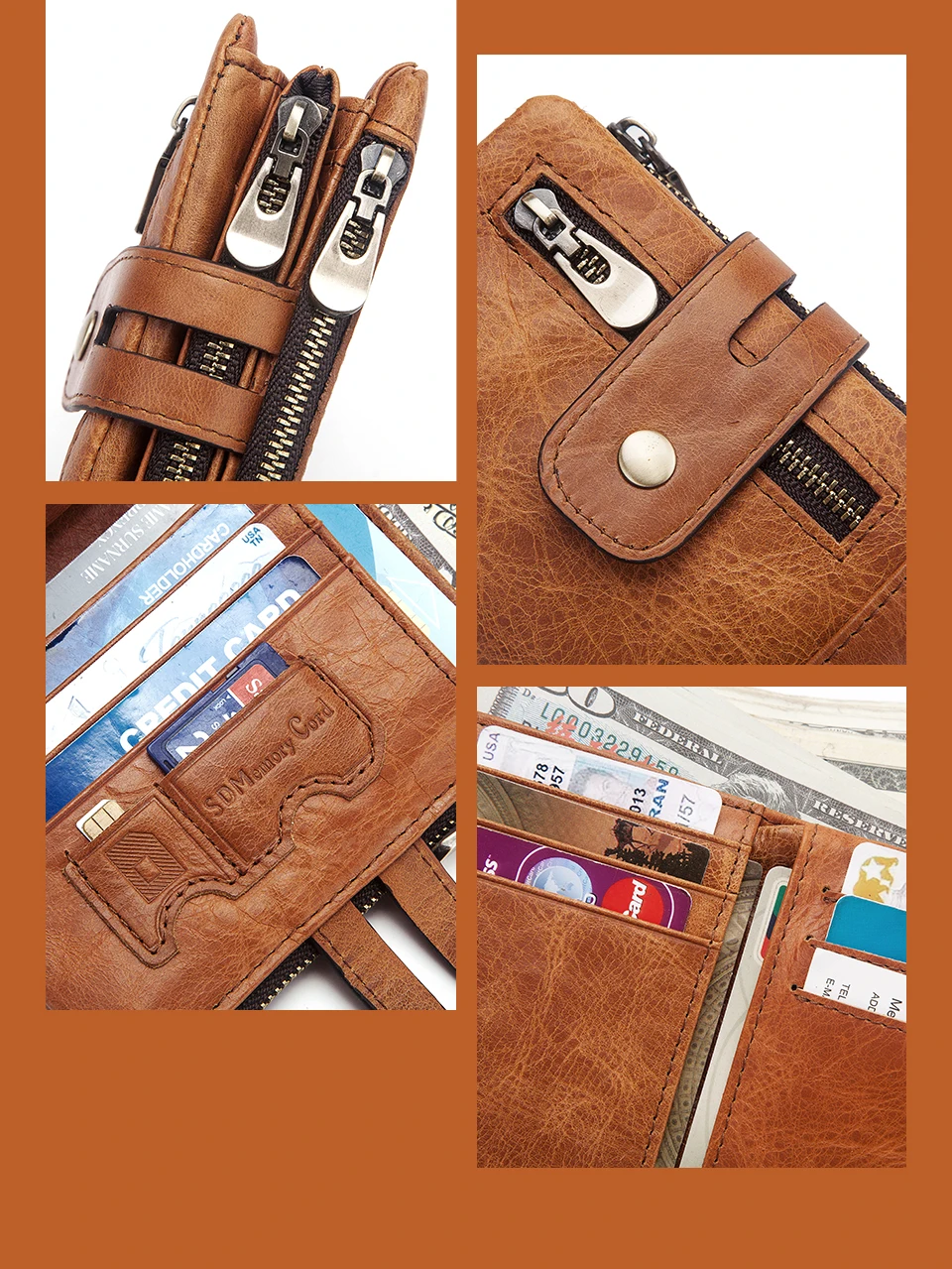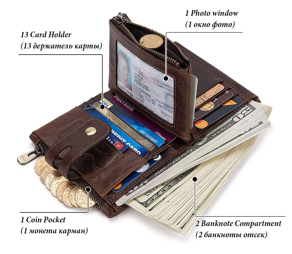 Be the first to review “ZRE-AEKDWLT New Genuine Crazy Horse Leather Men Wallets Credit Business Card Holders Double Zipper Cowhide Leather Wallet Purse Carteira”