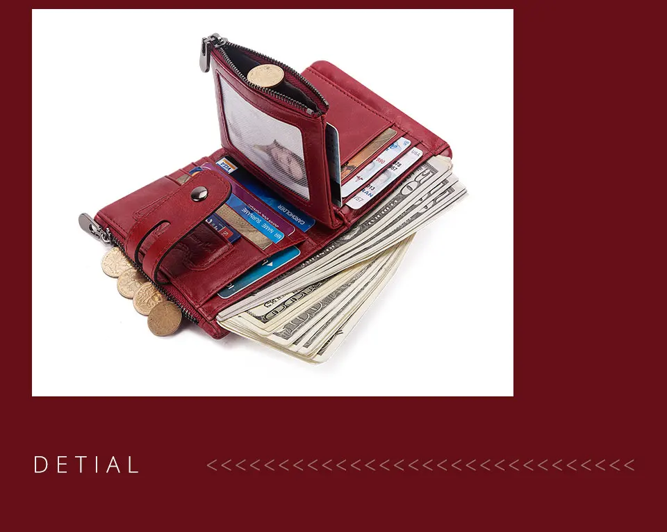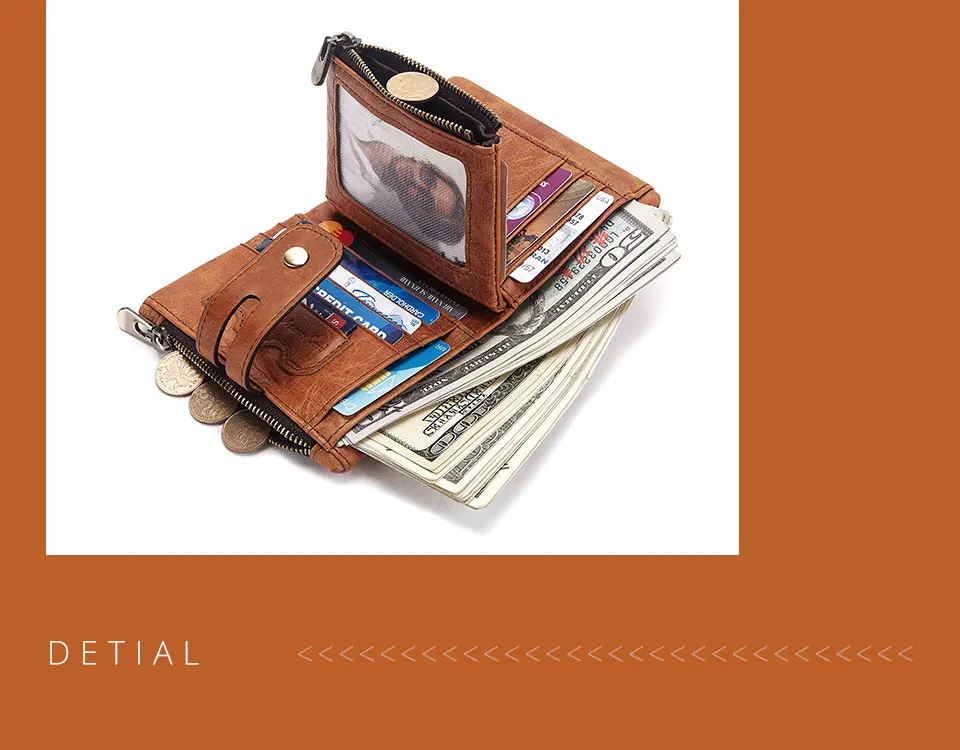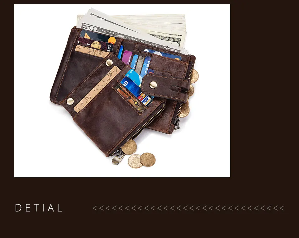 ZRE-AEKDWLT New Genuine Crazy Horse Leather Men Wallets Credit Business Card Holders Double Zipper Cowhide Leather Wallet Purse Carteira