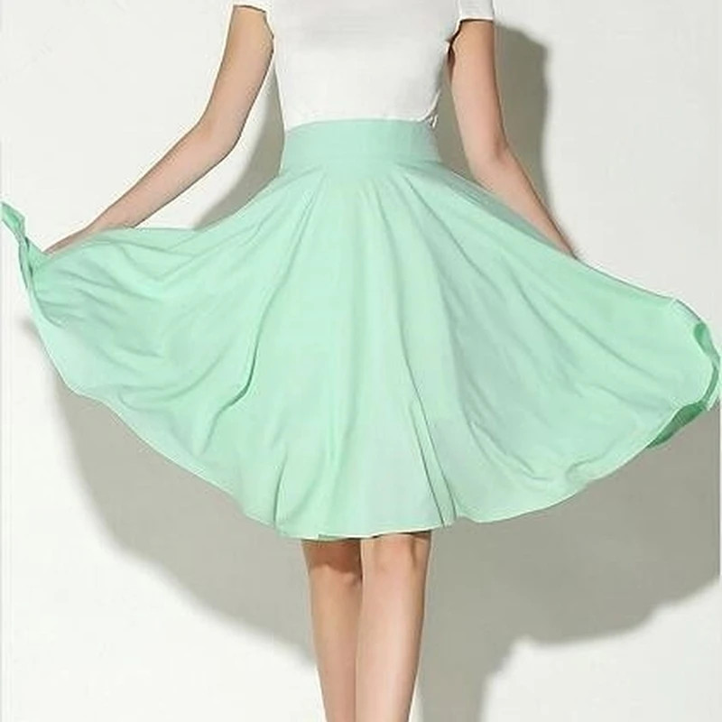 2021 New Fashion Women Solid Knee-Length Big Swing Umbrella Skirt High Waist Vintage Ladies Midi Saia Skater Skirt