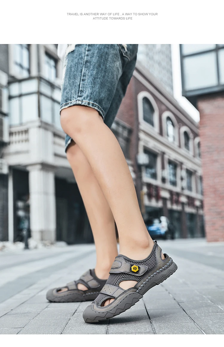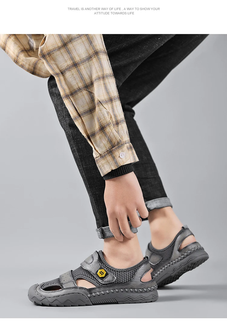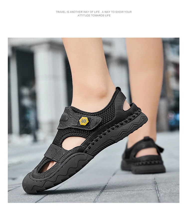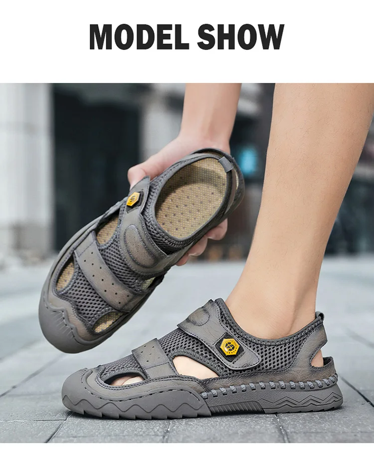 - 5801: Classic Quality Leather Mesh Men Sandals
