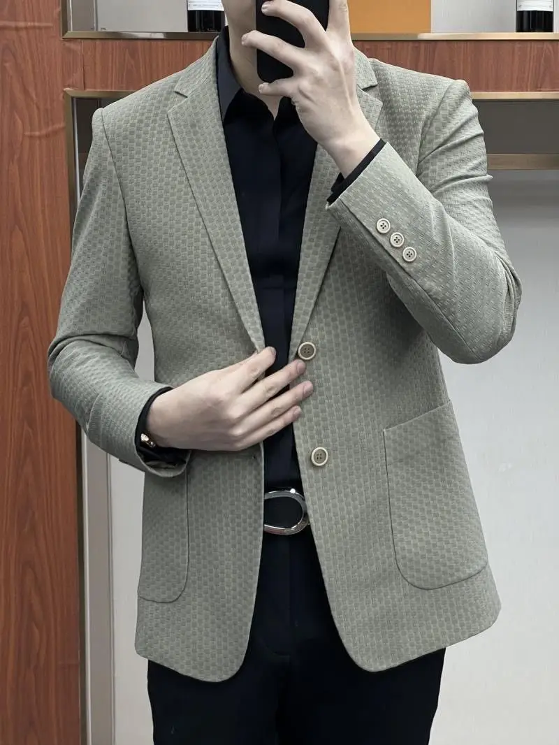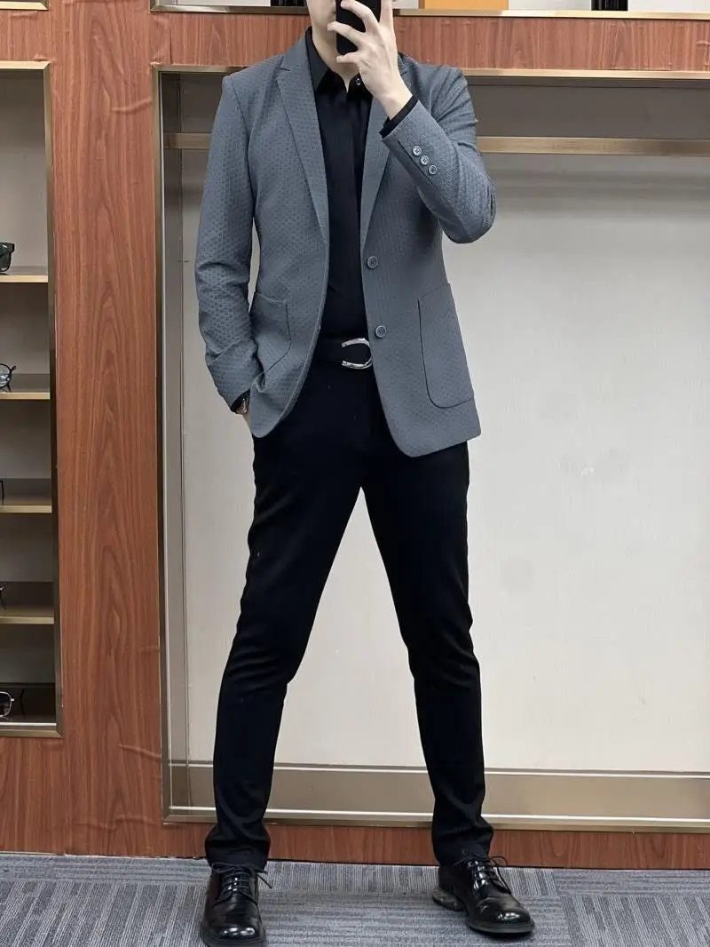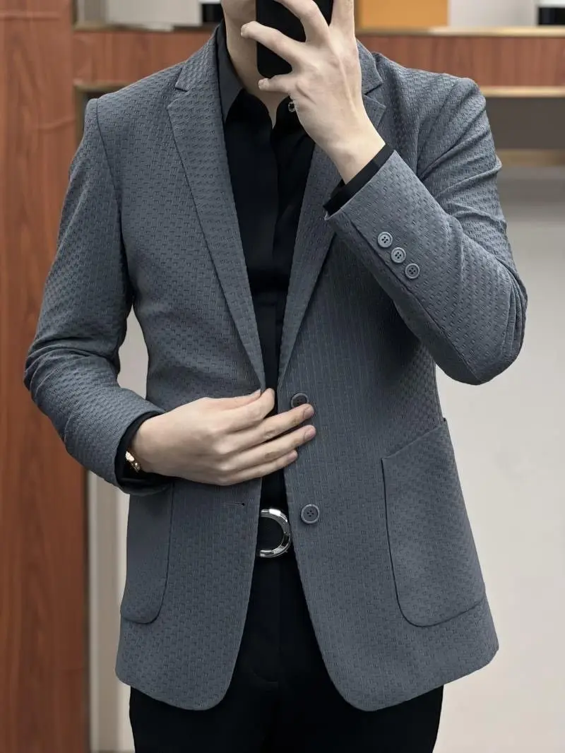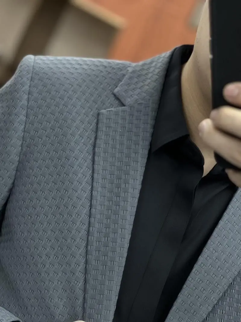 - Commerce Ice Silk Casual Suit: Male Waffle New in Suits