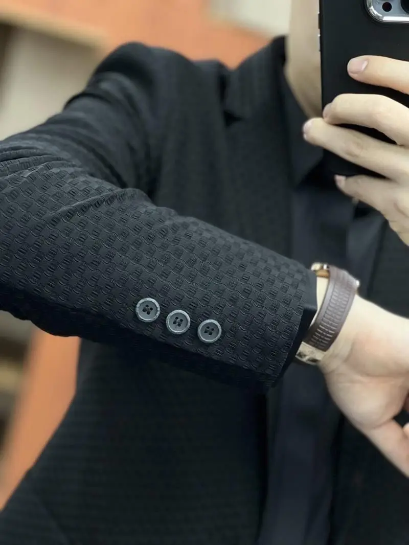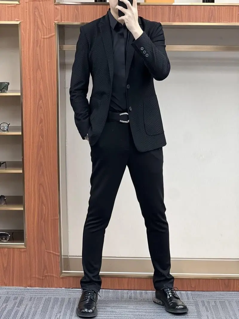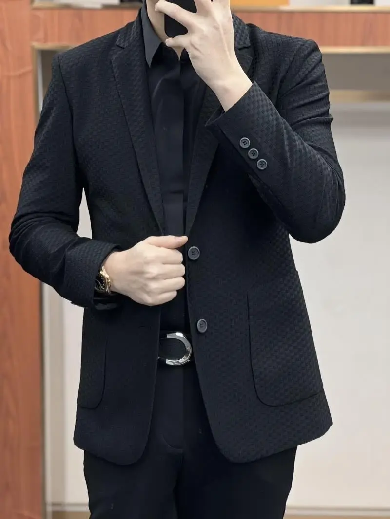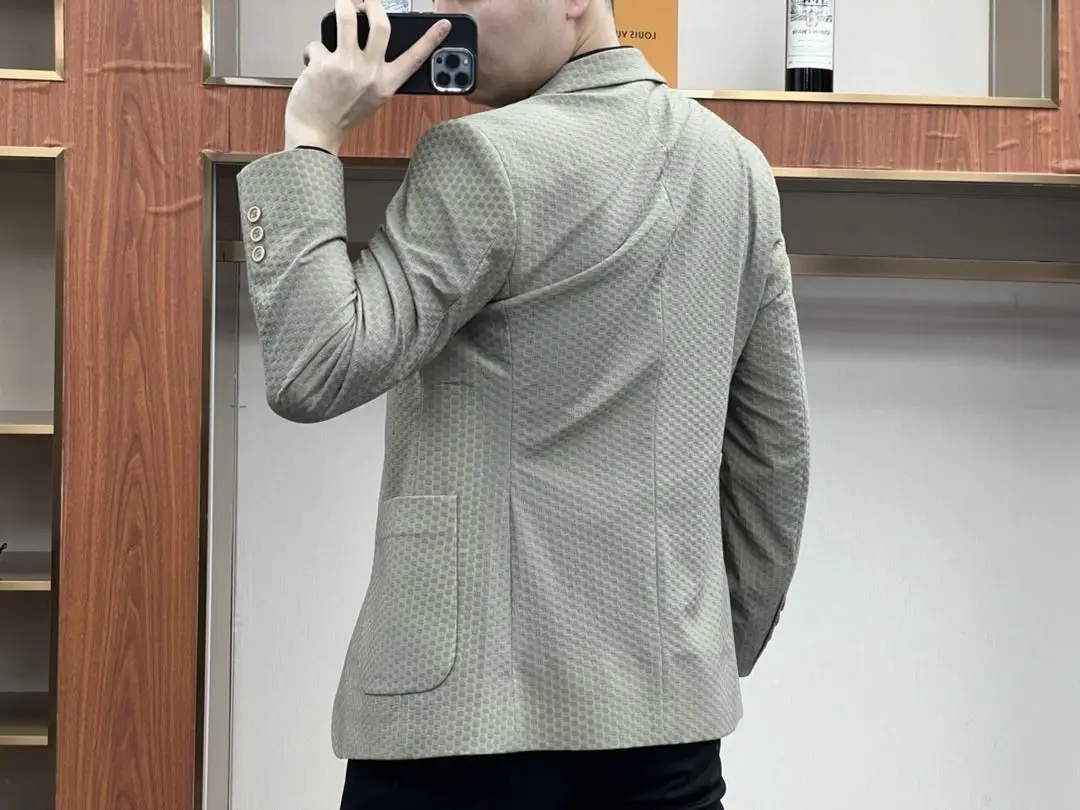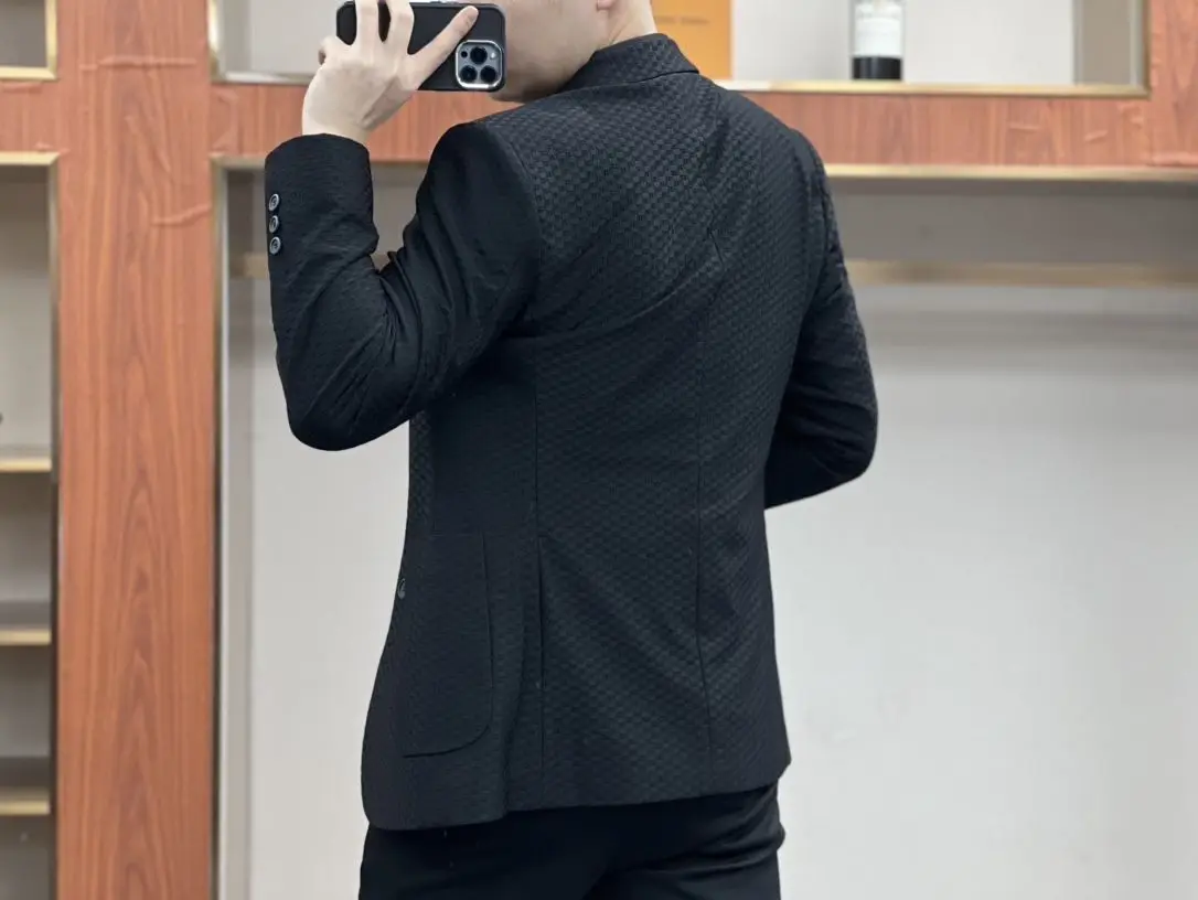 - Commerce Ice Silk Casual Suit: Male Waffle New in Suits