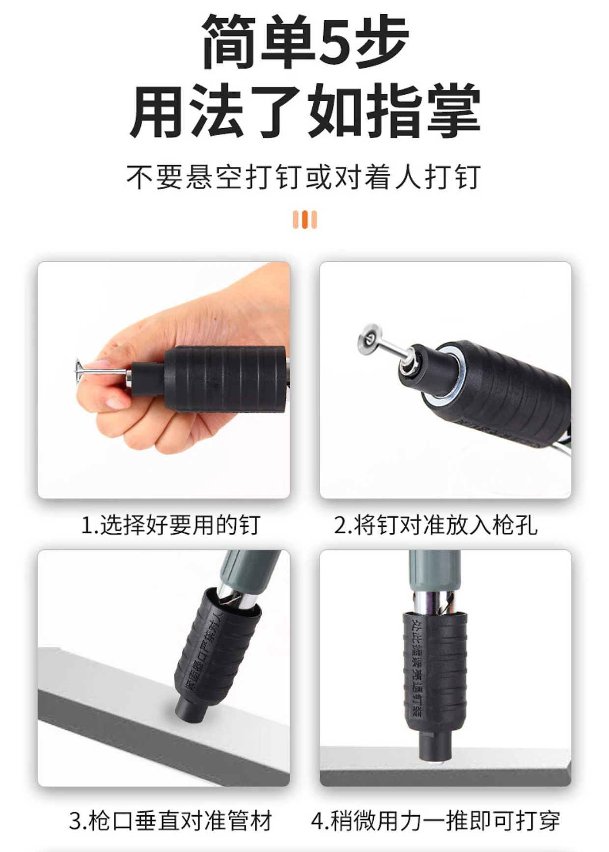 2. Small and Convenient. Light weight, small size, can be operated with one hand, equipped with a carrying bag, easy to carry the machine and nails.