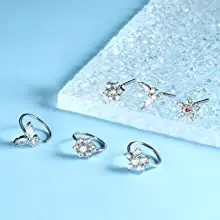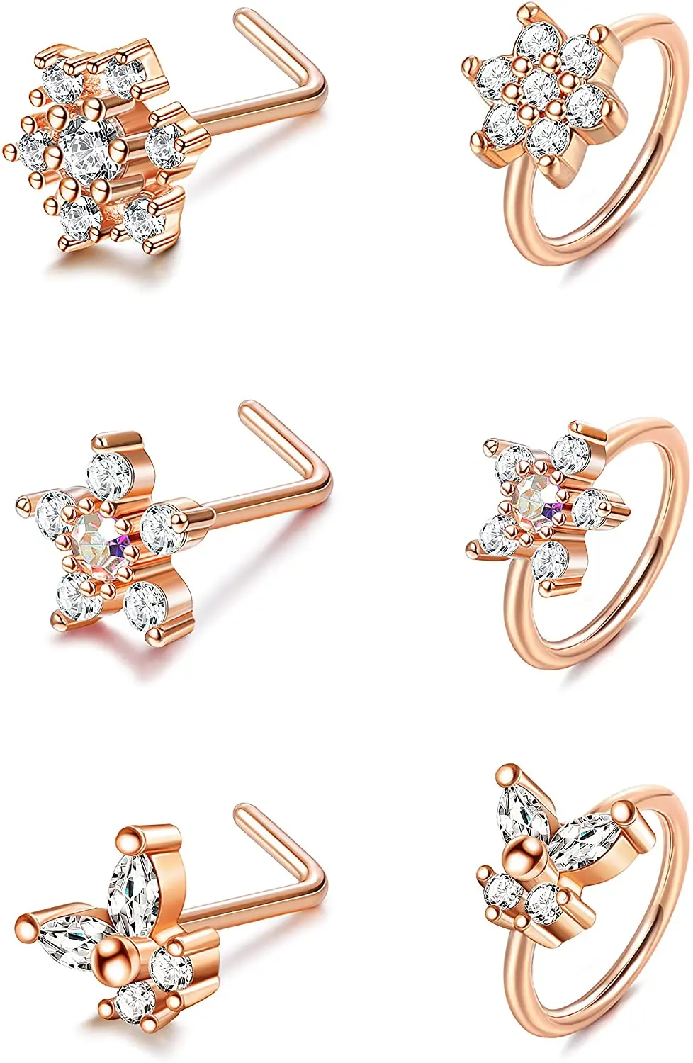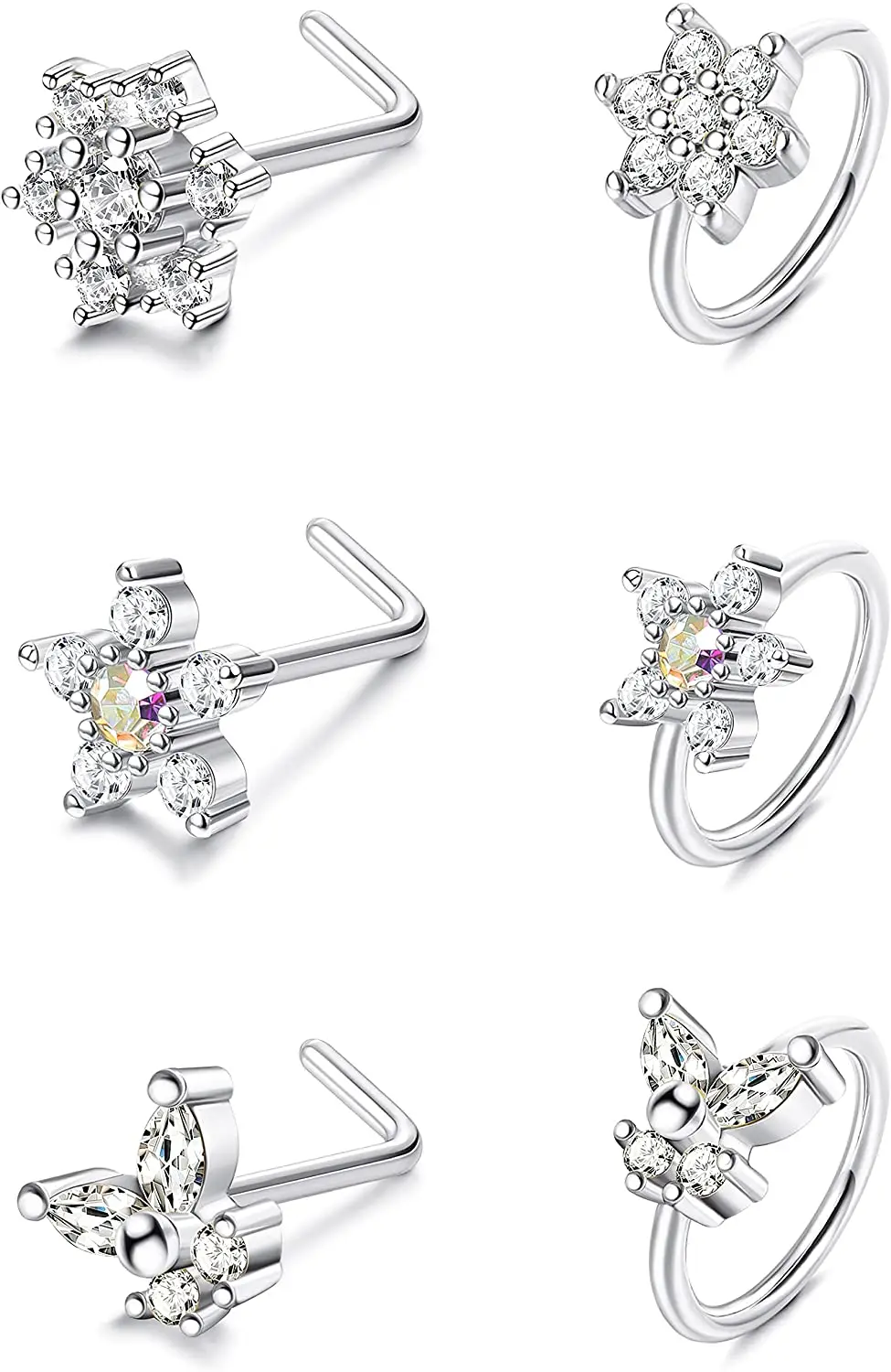 1Pcs 20G Nose Rings Nose Ring Studs Stainless Steel Nose Ring Hoops Butterfly Flower Snowflake Nose Star Nose Piercing Jewelry