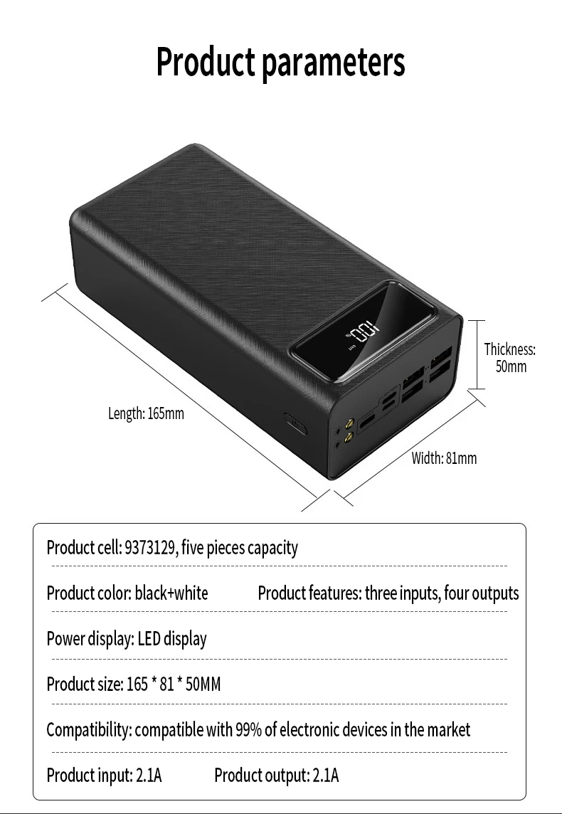 ZRE-AEPBANK Fast Charging Power Bank 80000mAh High Capacity Portable External Charger Digital Display External Battery light for IPhone mi
