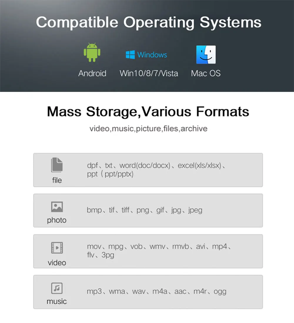 4. Please use FAT32 or exFAT to format the memory disk. Please do not format your USB flash drive frequently, otherwise the USB will be damaged easily.