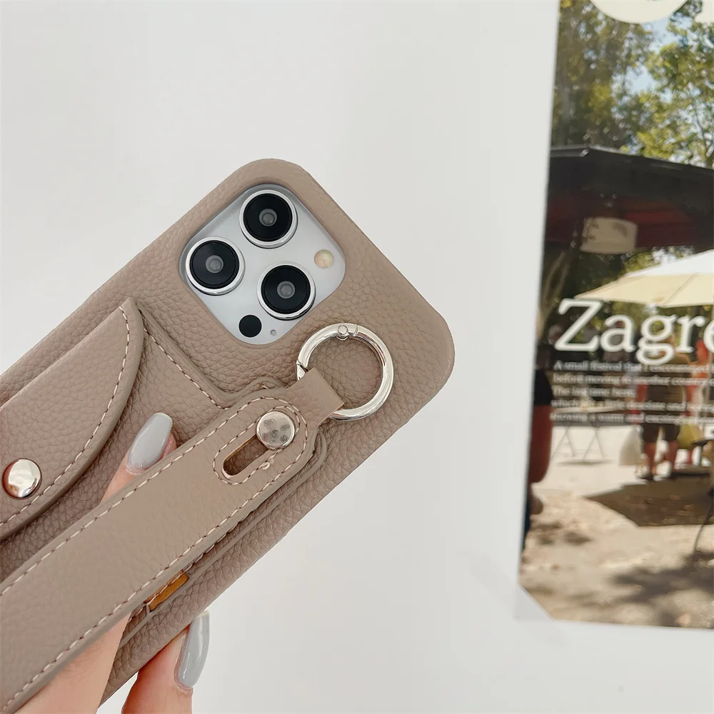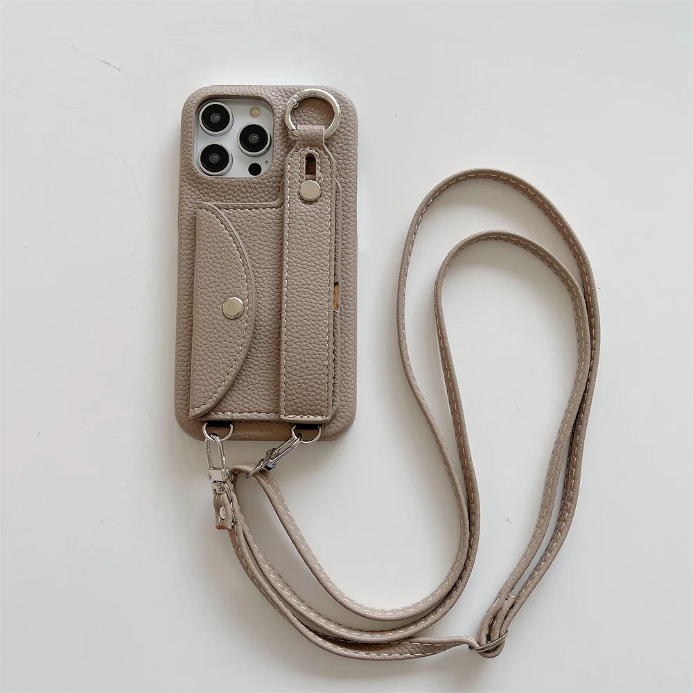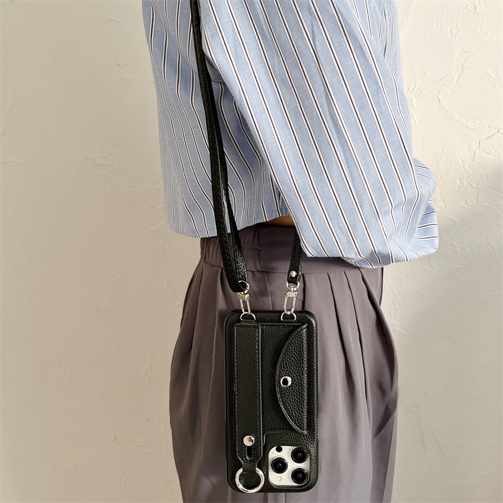 This product is a litchi leather mobile phone case with card storage function. The wrist strap can be used as a desktop support and can also prevent slipping during use. The cross-body sling can prevent the loss of mobile phone, and it can free your hands at the right time. This is a high-quality multifunctional mobile phone case, which is worth having