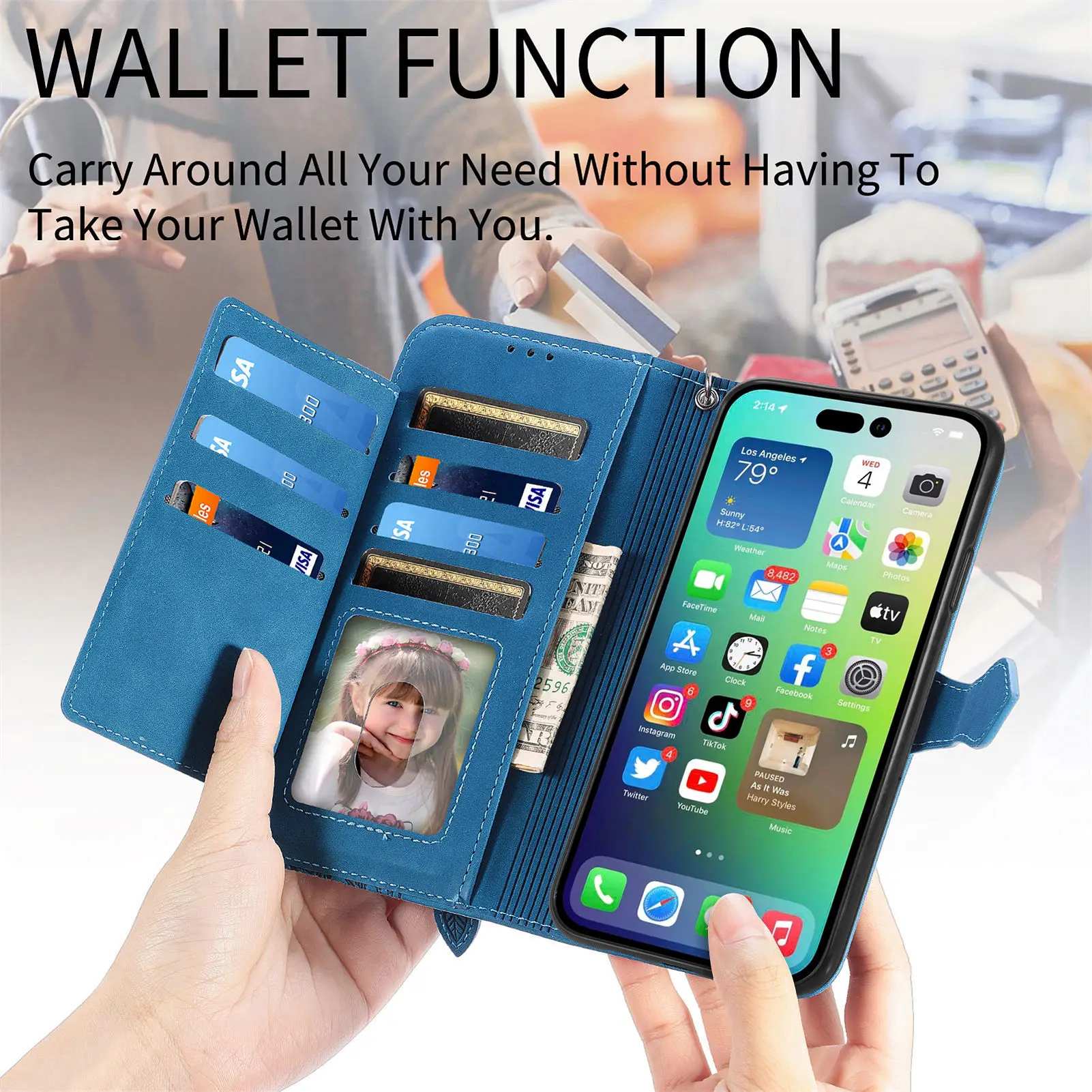 - Function: Anti-knock Protective Wallet Cover With Card Slot