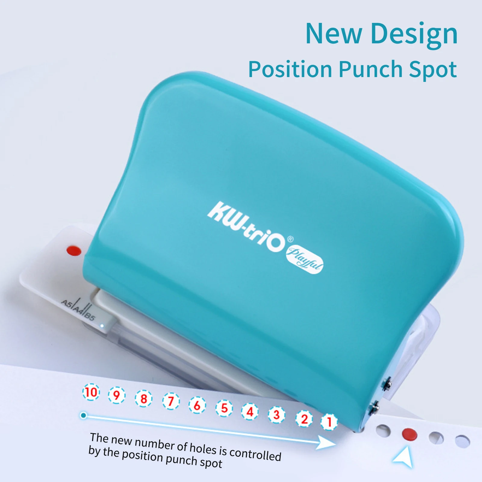 KW-triO 10-Hole Paper Punch Handheld Metal Puncher Support Multiple 20/26/30 Hole Punching 10 Sheet Capacity 5.5mm Aperture