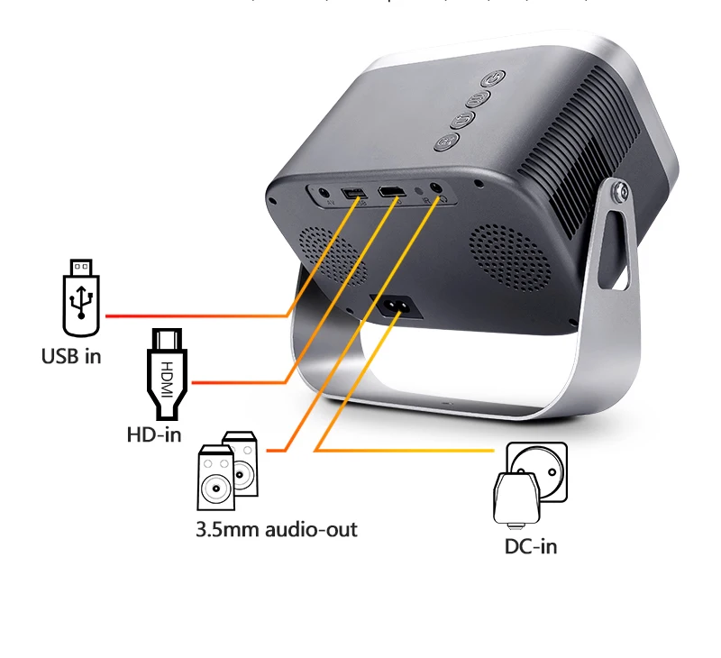 A003 It support to mirror screen by wire-free connections. Support U disk to read videos and pictures. Connect TV BOX, XBOX, PS, Switch, Computer via HD Port. It is a wise choice for smart home theat
